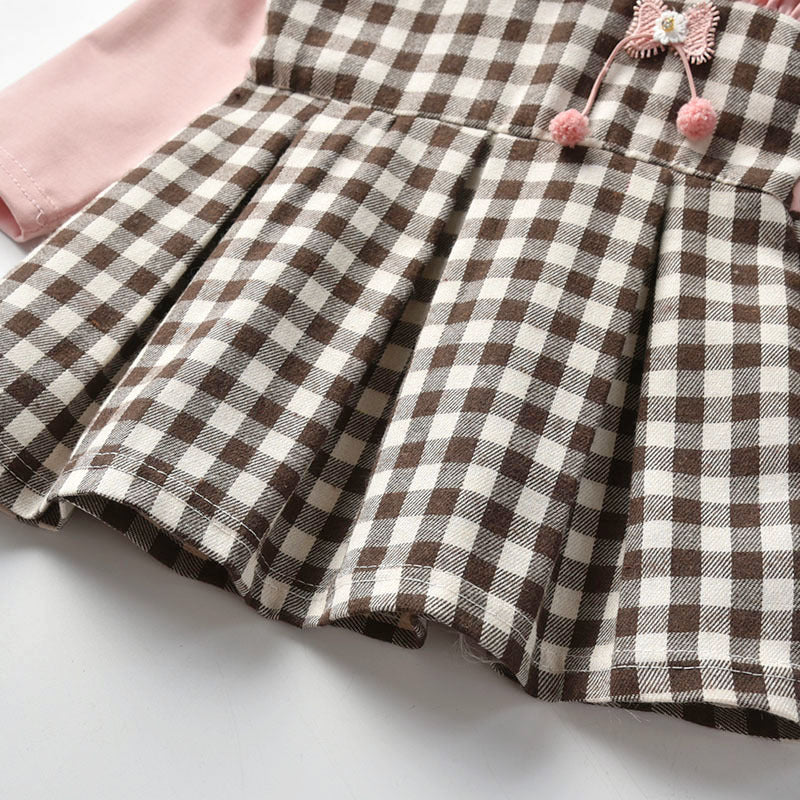Toddler Girls Sweet Plaid Color-block Bow Dress Wholesale