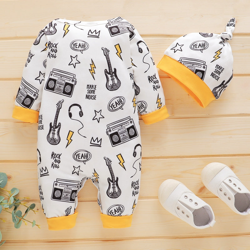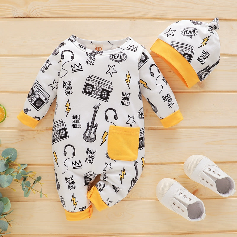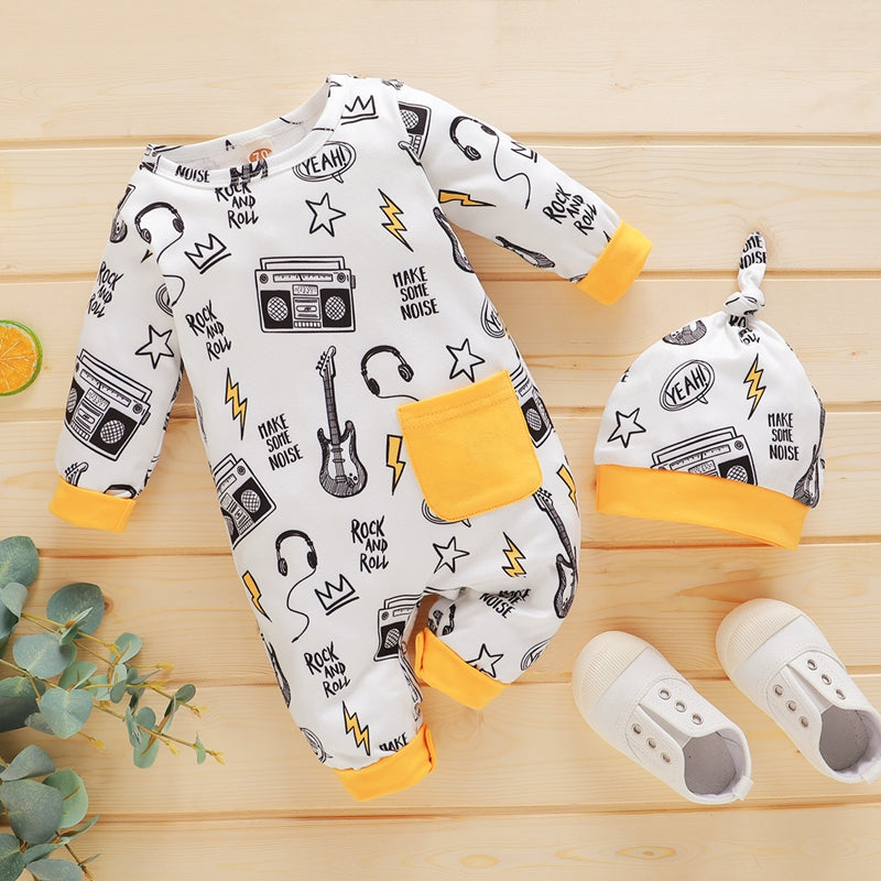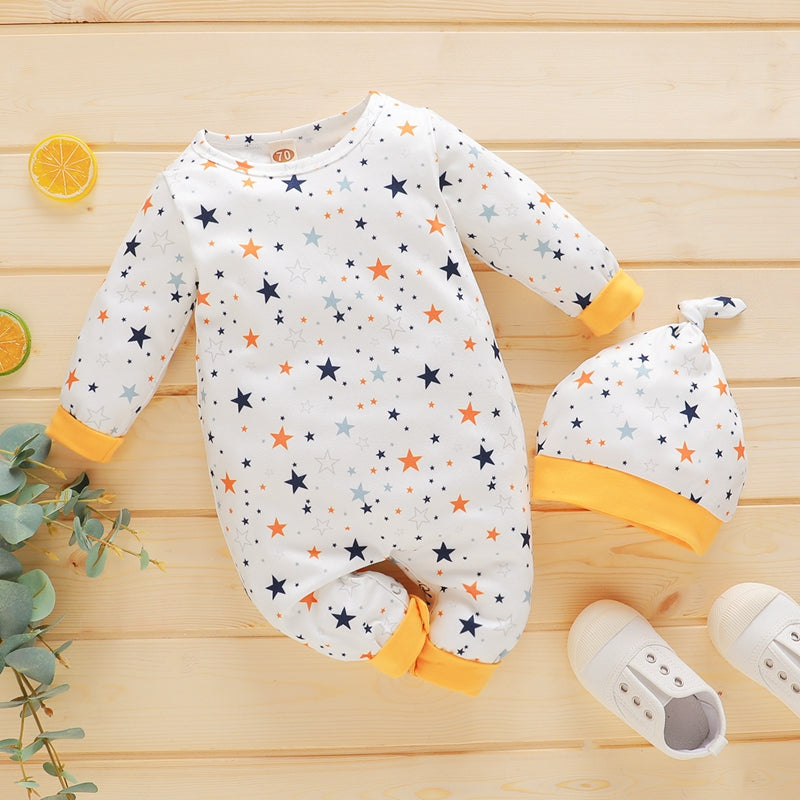 Baby Casual Cartoon Pentagram Print Long Sleeve Jumpsuit & Hat Wholesale