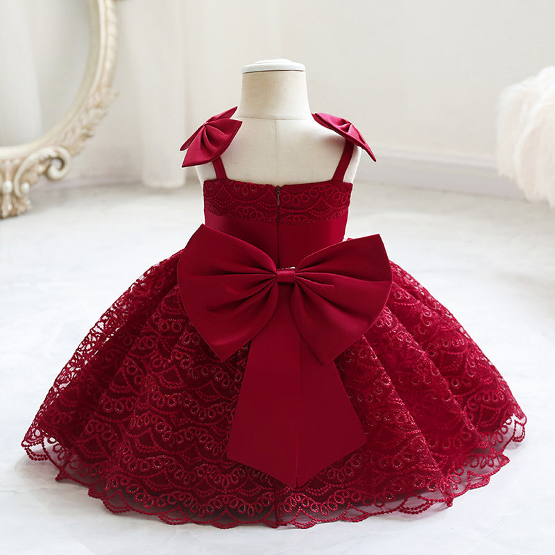Toddler Girl Lace Eleguard Formal Dress Removable Bow Knot Decor Wholesale