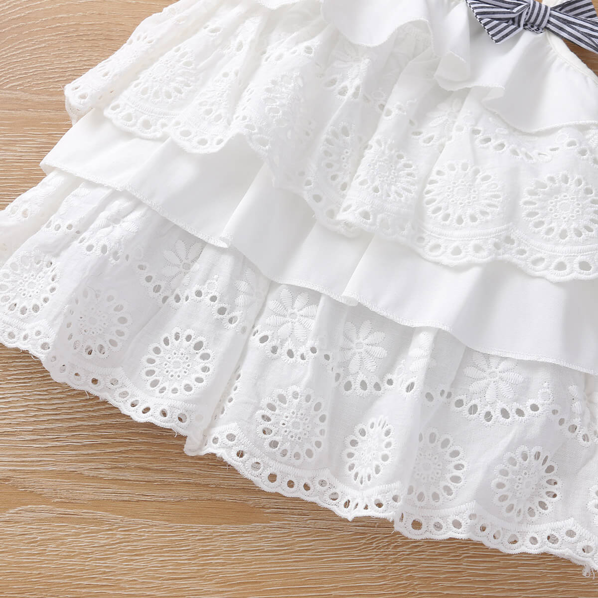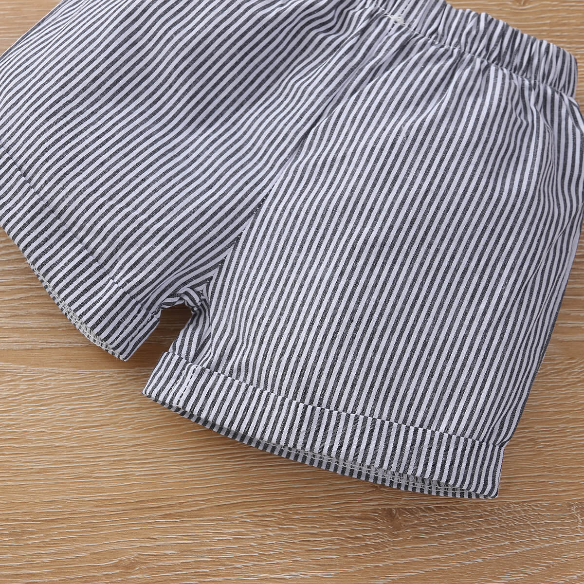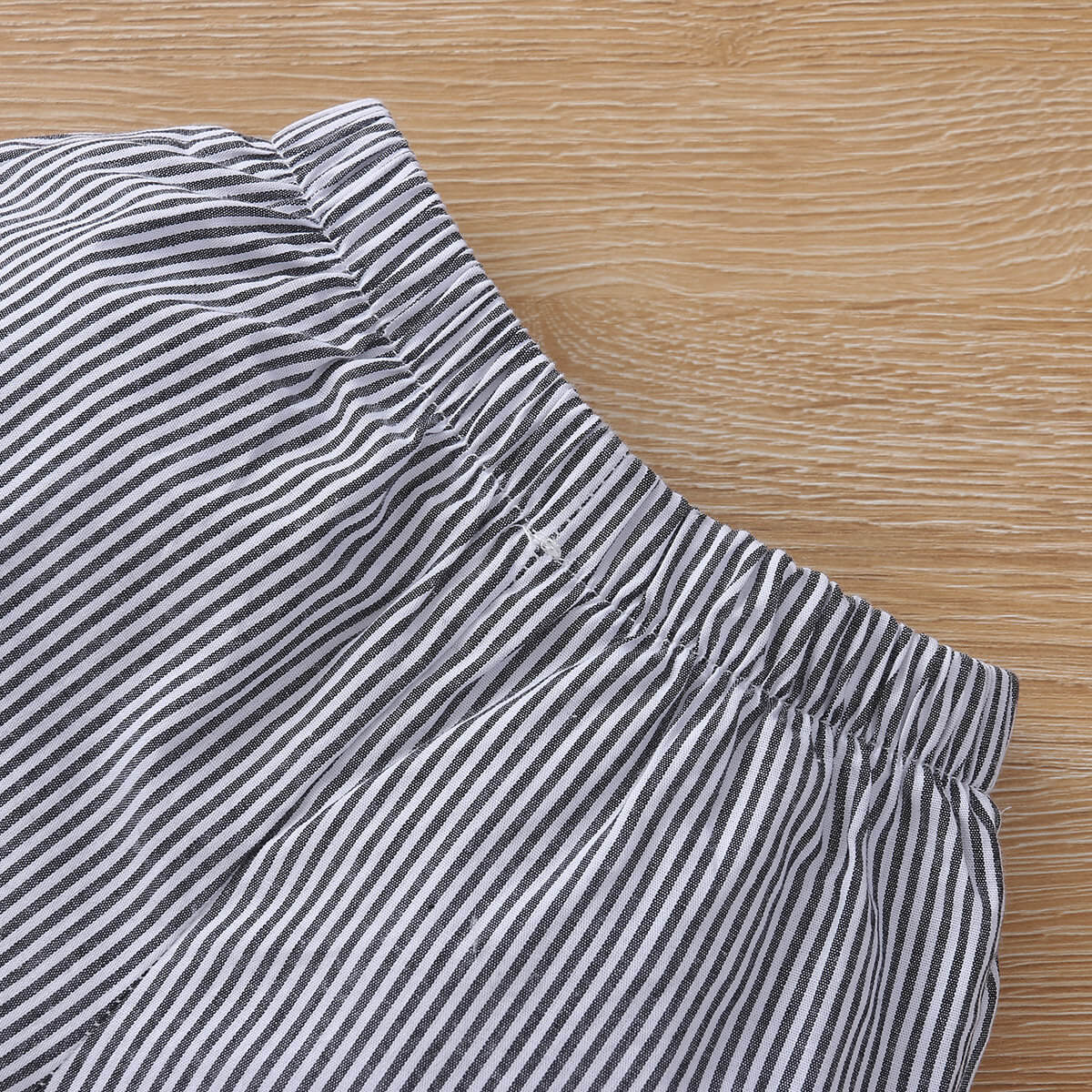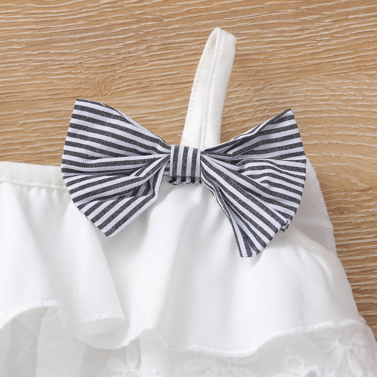 Baby Girl 2 Pieces Solid Lace Bow Decor Top & Stripes Shorts Wholesale