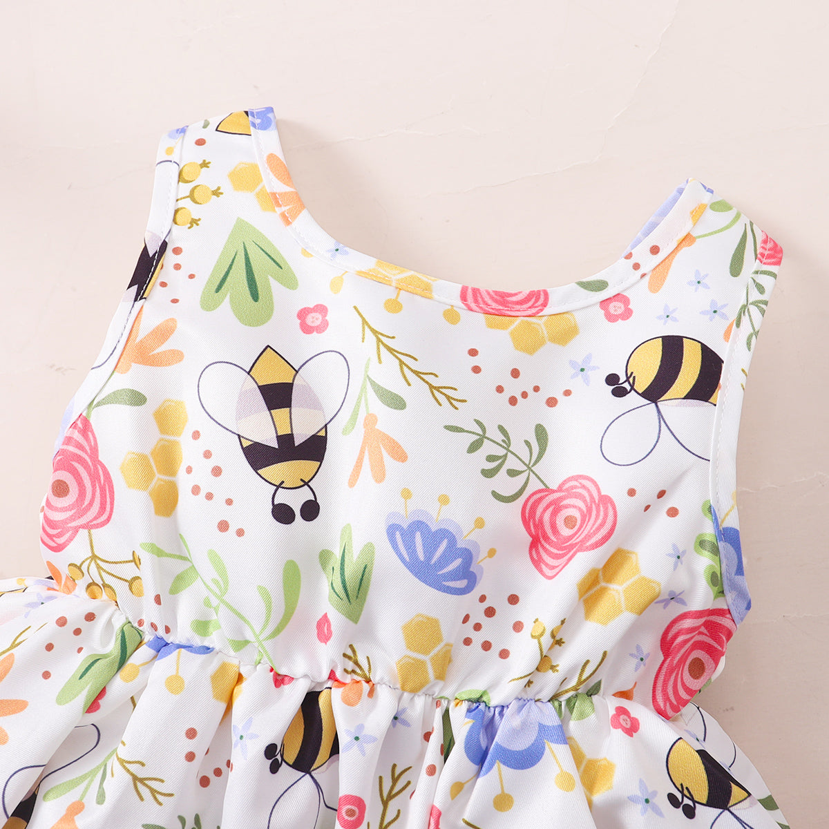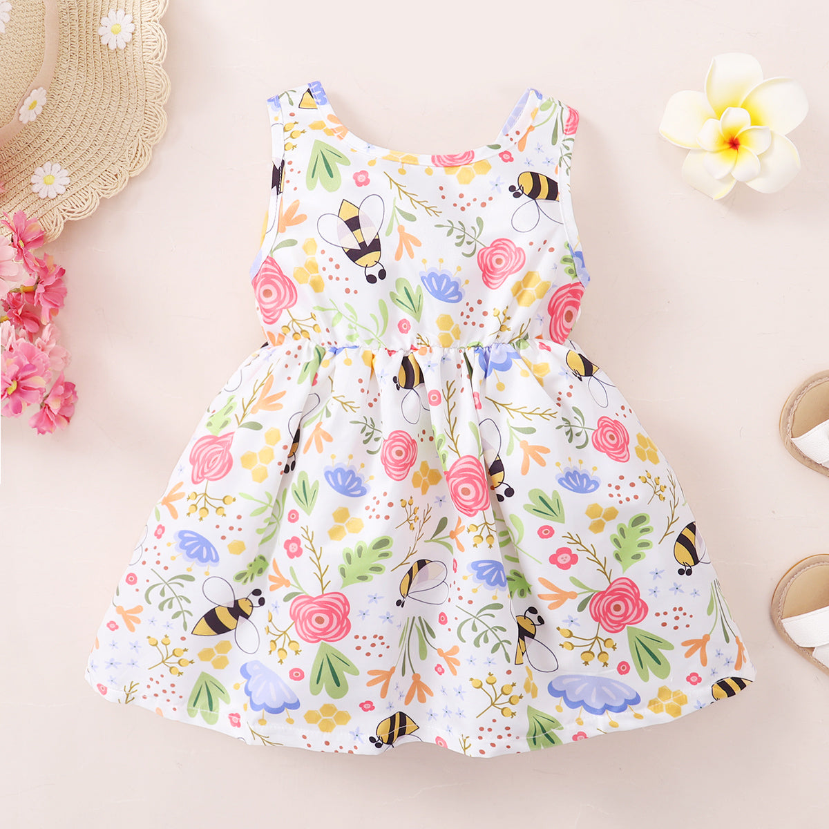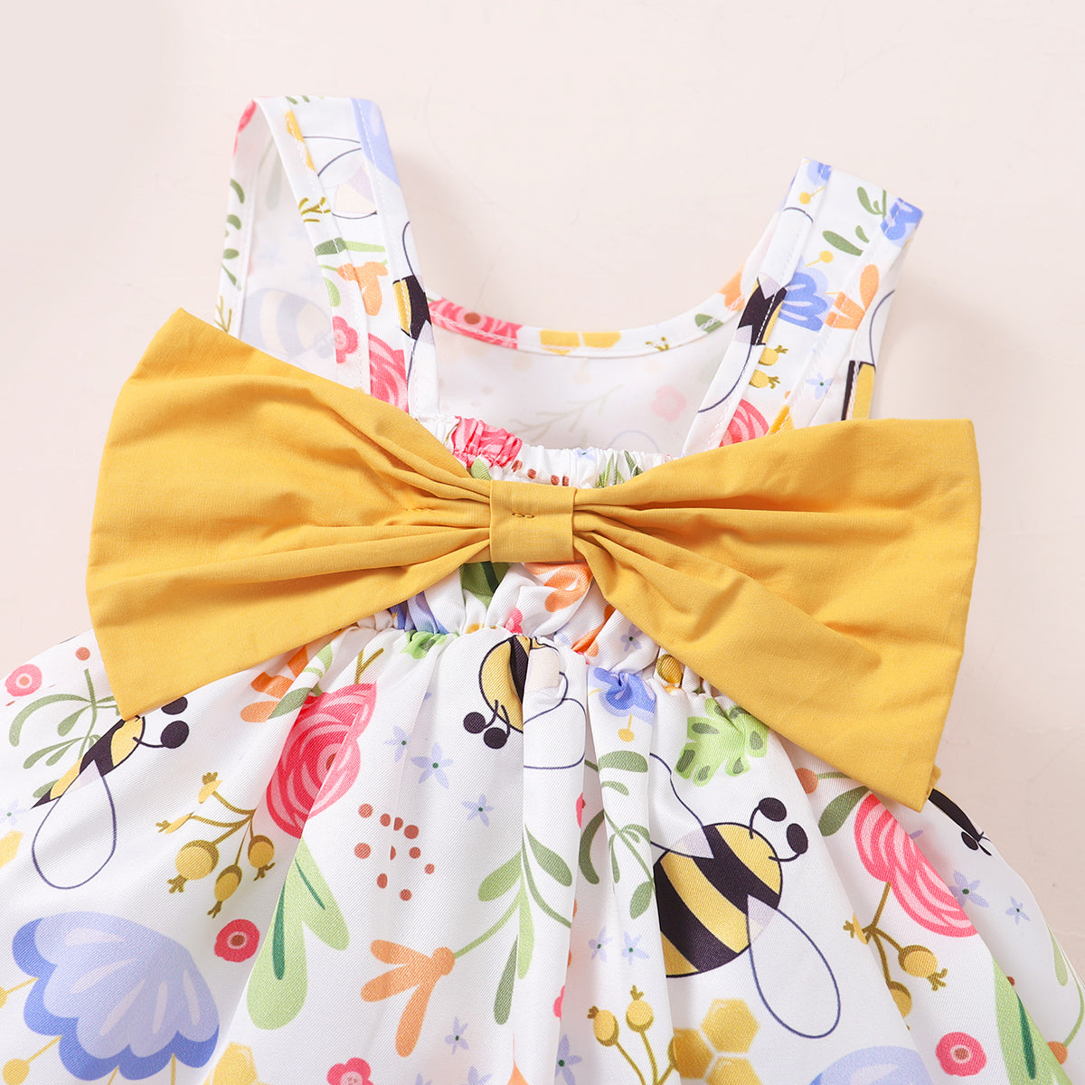 Baby Girl Sweet Sleeveless Floral Bow Dress Wholesale