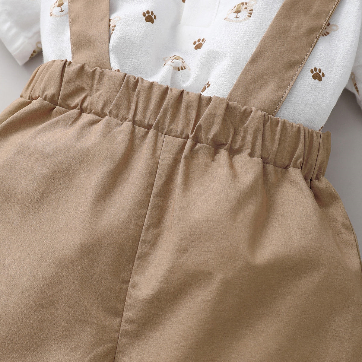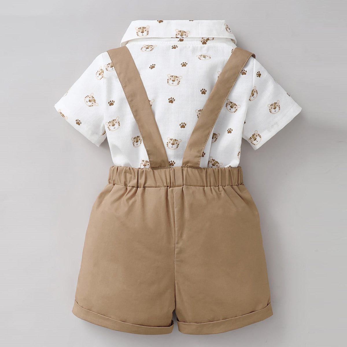 Baby Boy 3 Pieces Suit Animal Tiger Pattern Shirt & Suspender Shorts & Bow knot Wholesale