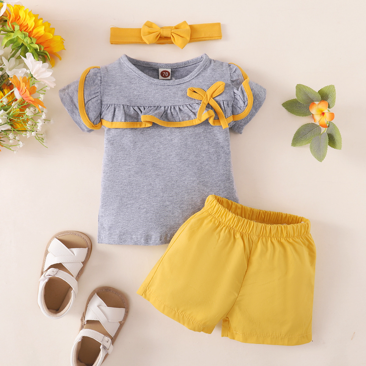 Toddler Boy 3-piece Solid Tops & Shorts & Headband for Whole Family Wholesale