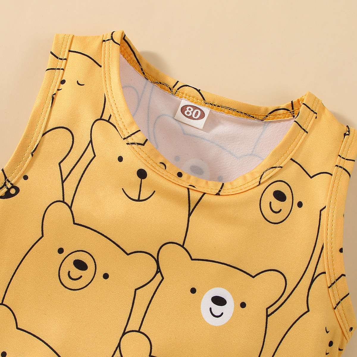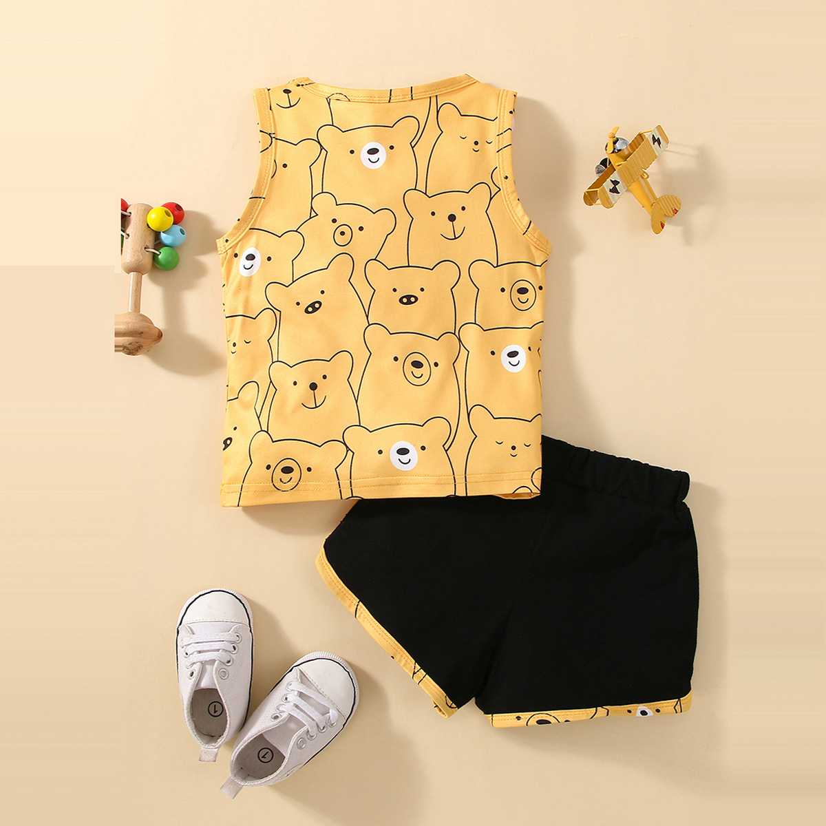 Baby Boy 2 Pieces Animal Bear Pattern Sleeveless T-Shirt & Shorts Wholesale