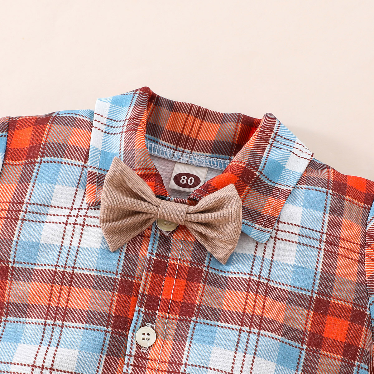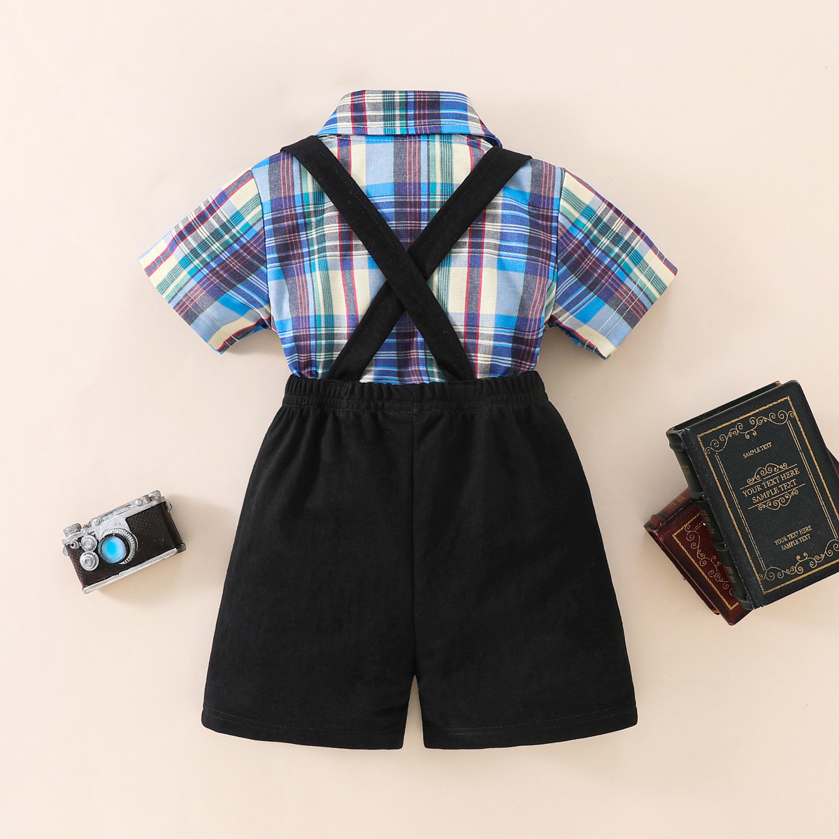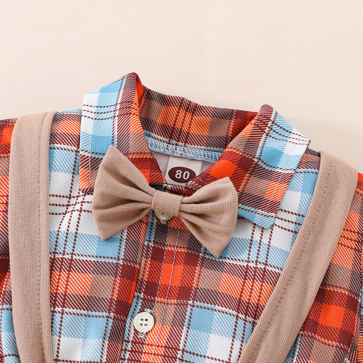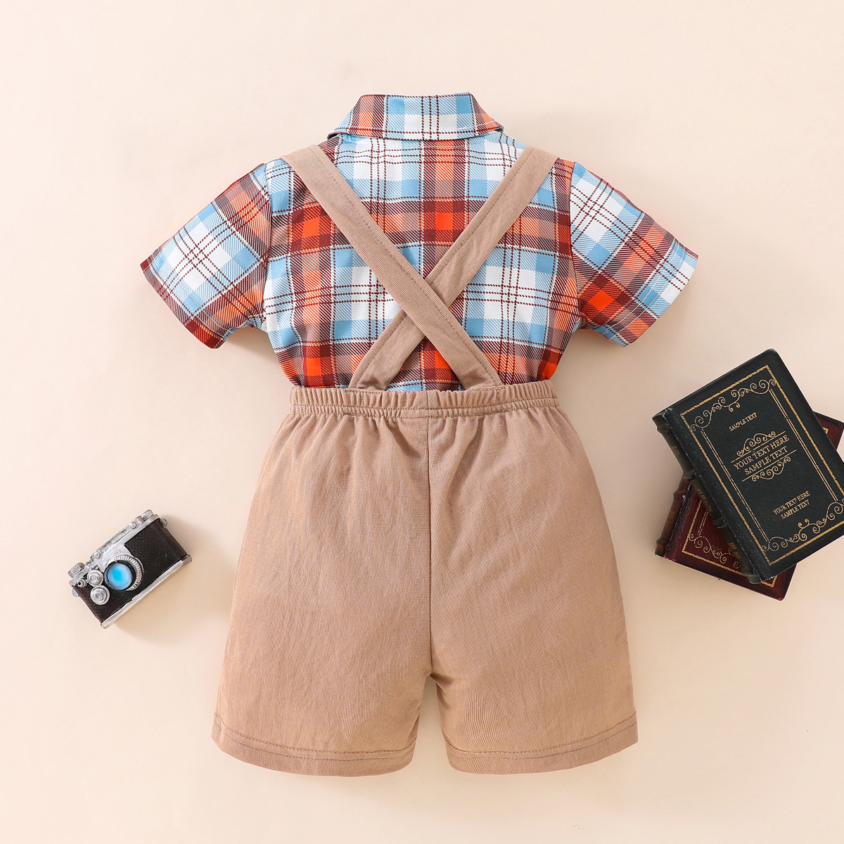 Baby Boy 3 Pieces Plaid Bodysuit & Suspender Shorts & Detachable Bow-tie Wholesale