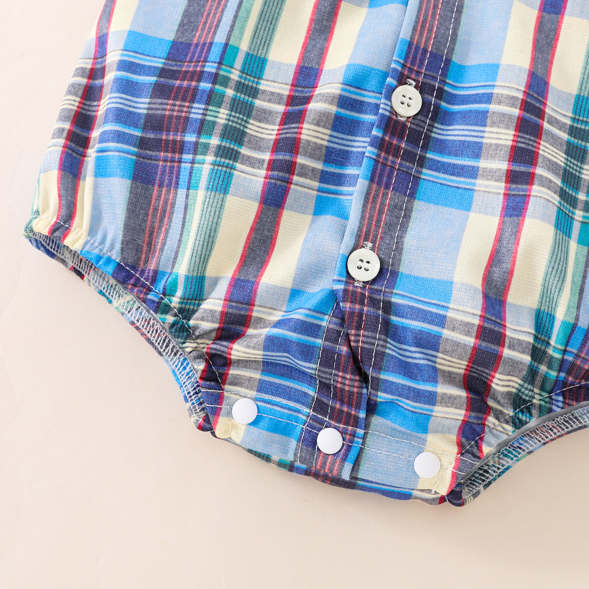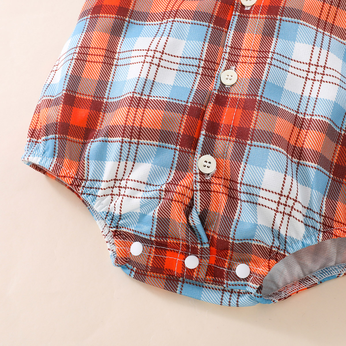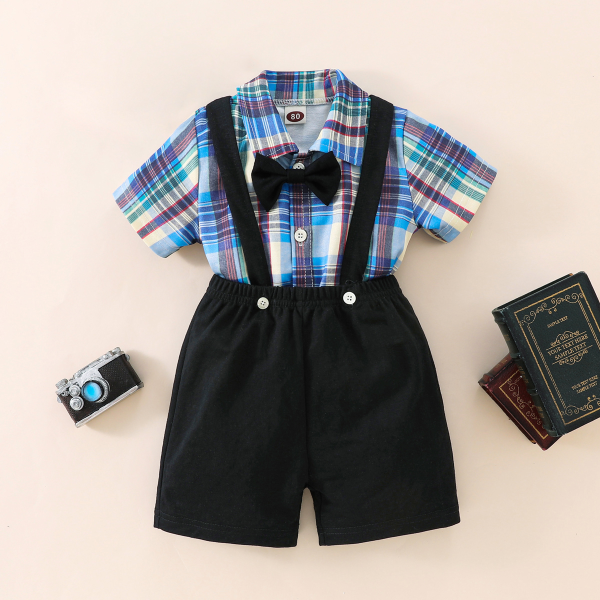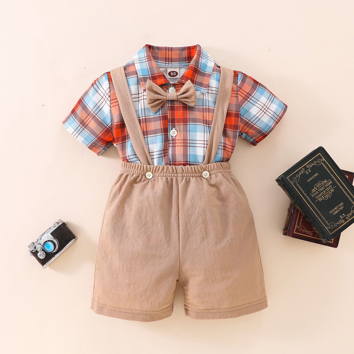 Baby Boy 3 Pieces Plaid Bodysuit & Suspender Shorts & Detachable Bow-tie Wholesale