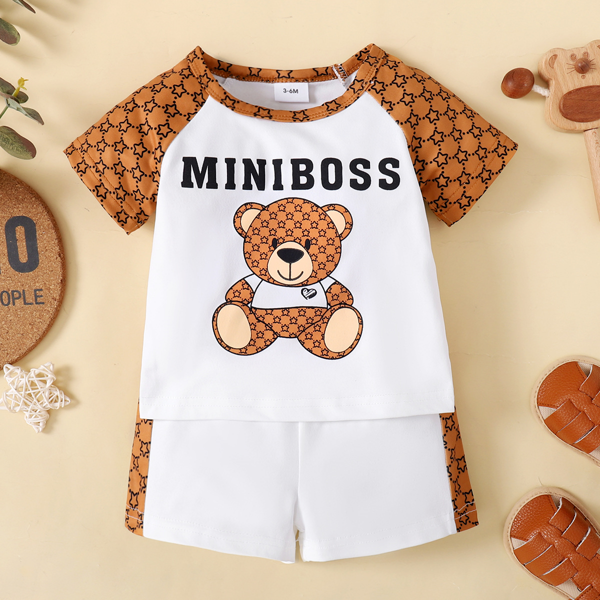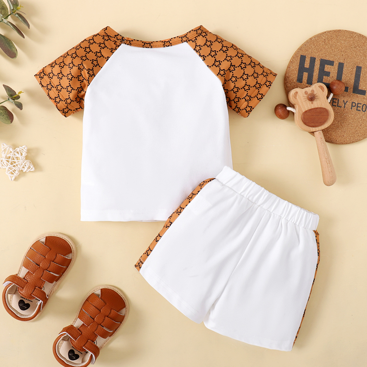 Baby Boy Cute Bear Letter Star Pattern Color-Block T-Shirt & Shorts Wholesale