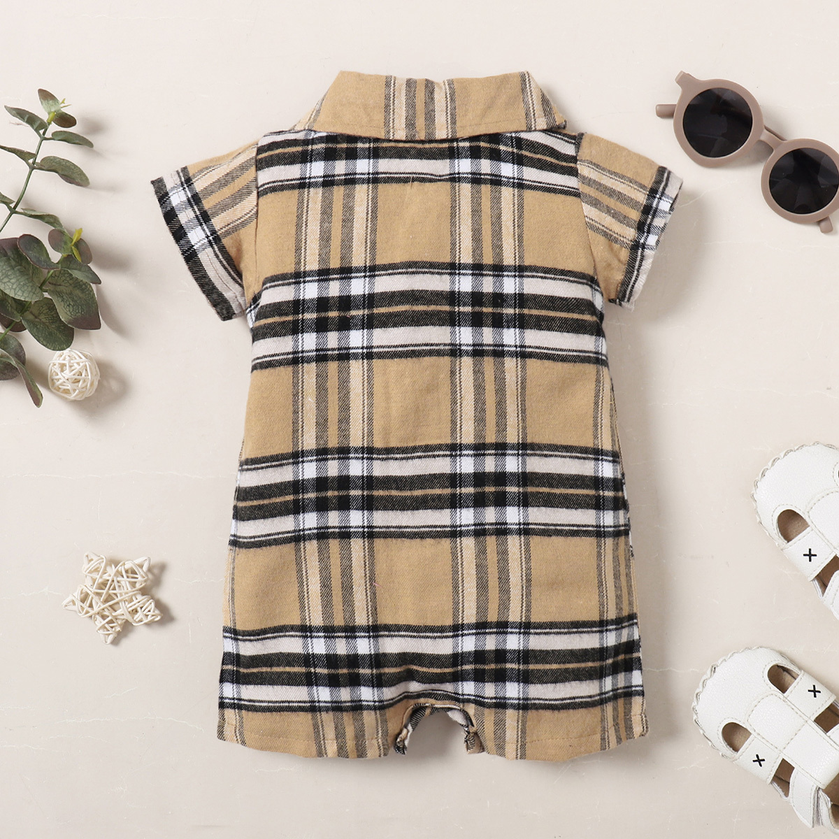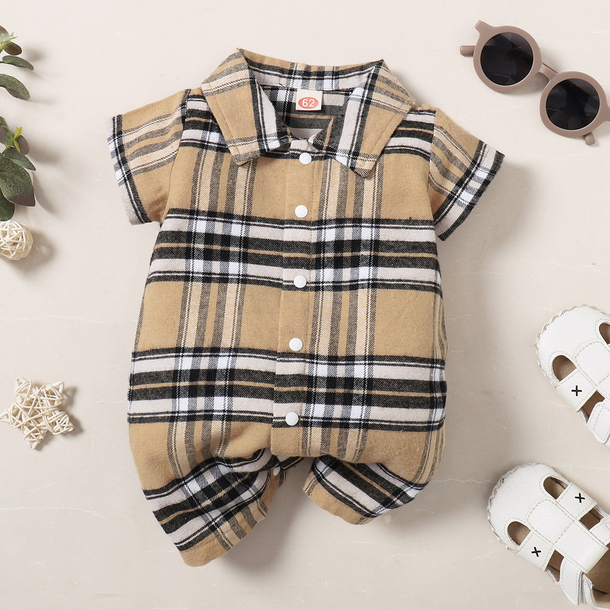 Baby Boy Short Sleeve Front button Plaid Bodysuits Wholesale