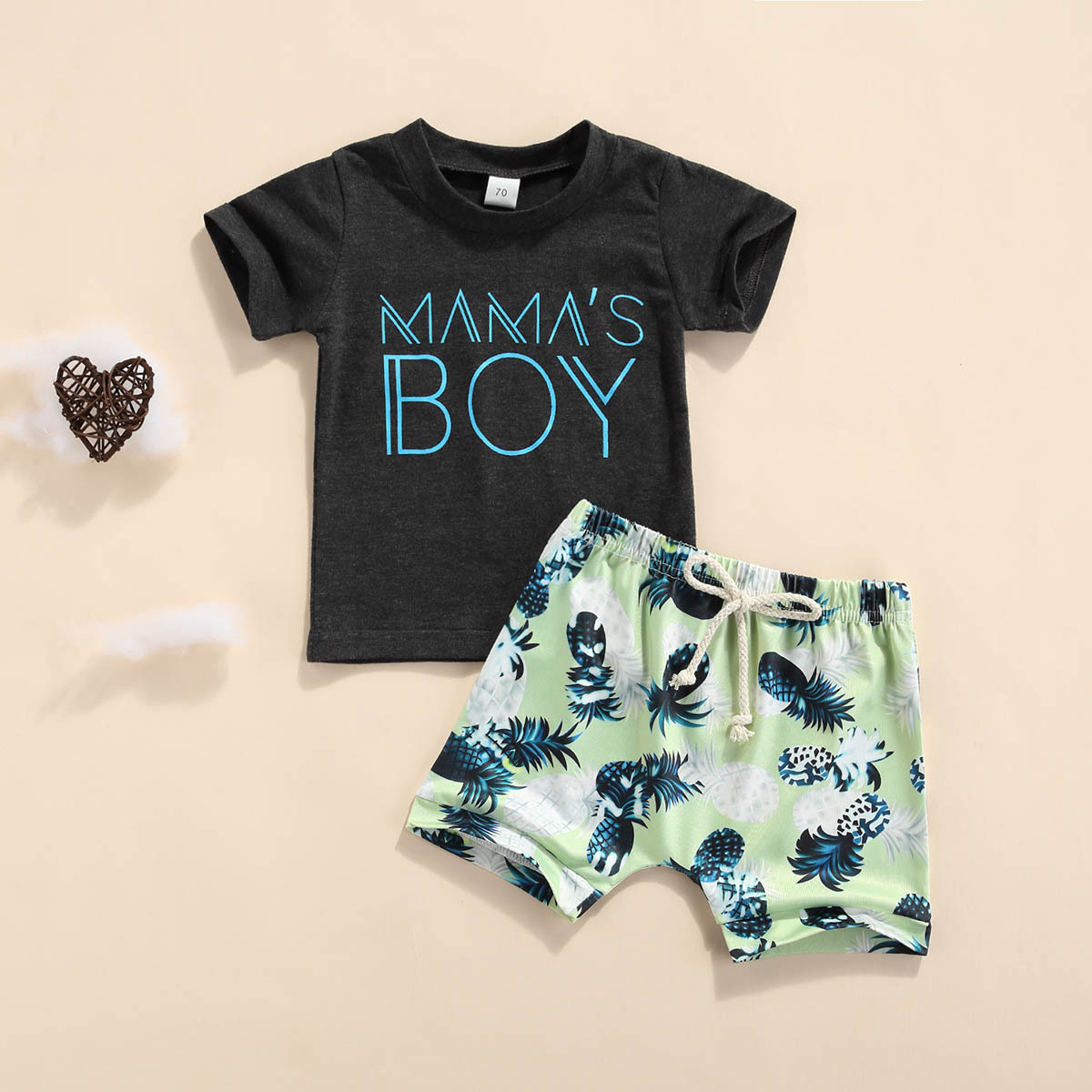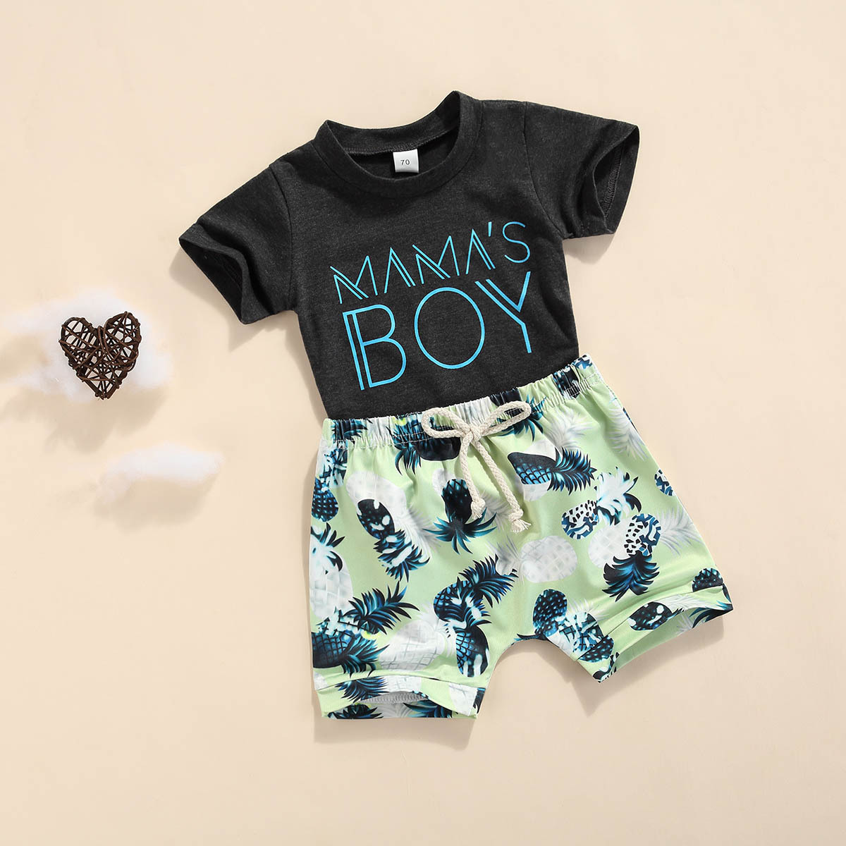 Baby Boy Short-sleeve Letter Top And Cactus Print Shorts Wholesale