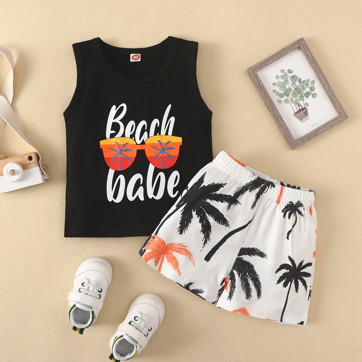 Baby Boy Sleeveless Letter Top & Tropical Print Short Wholesale