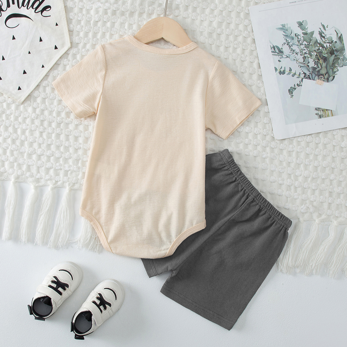 Baby Boy Solid Color Pocket Bodysuit & Shorts Wholesale