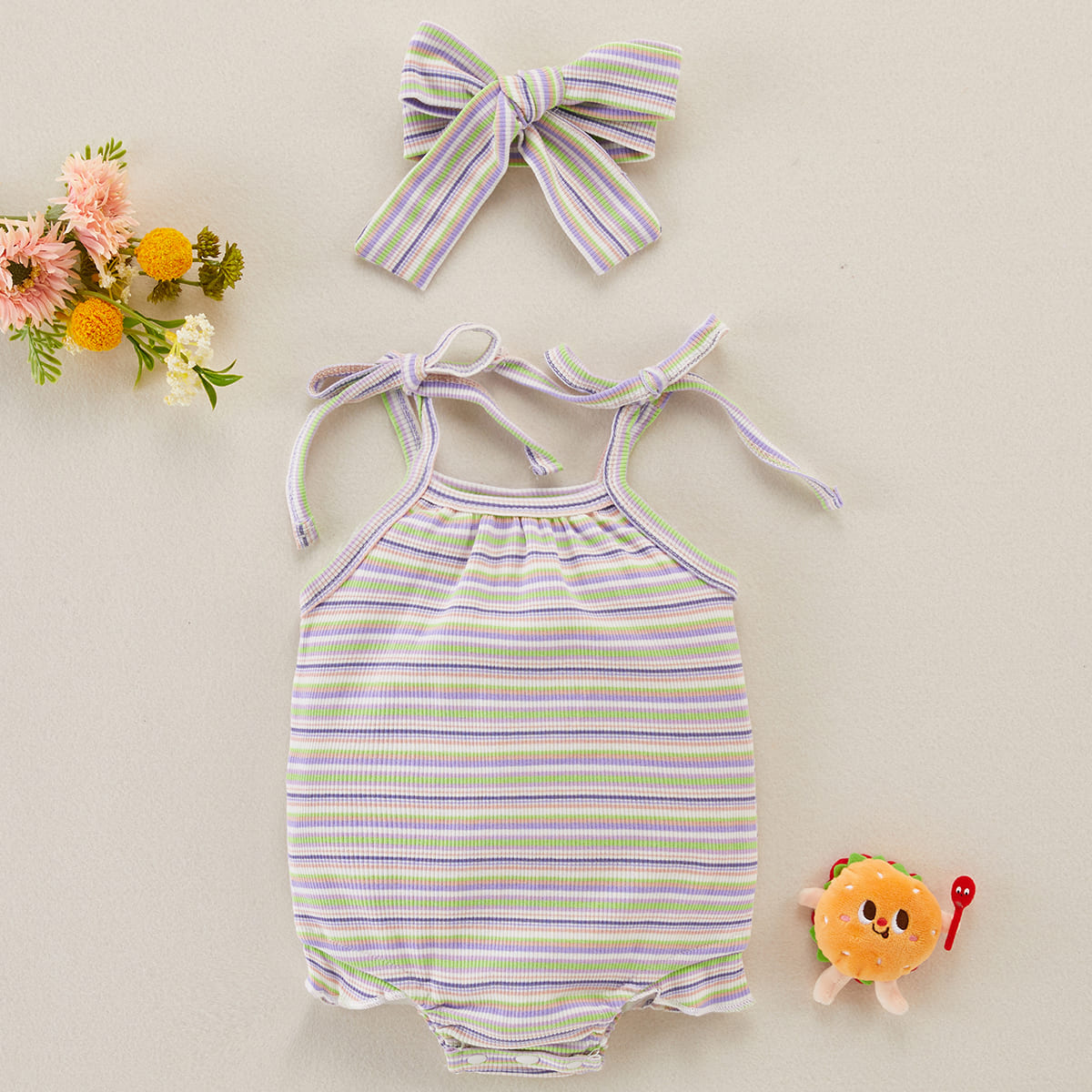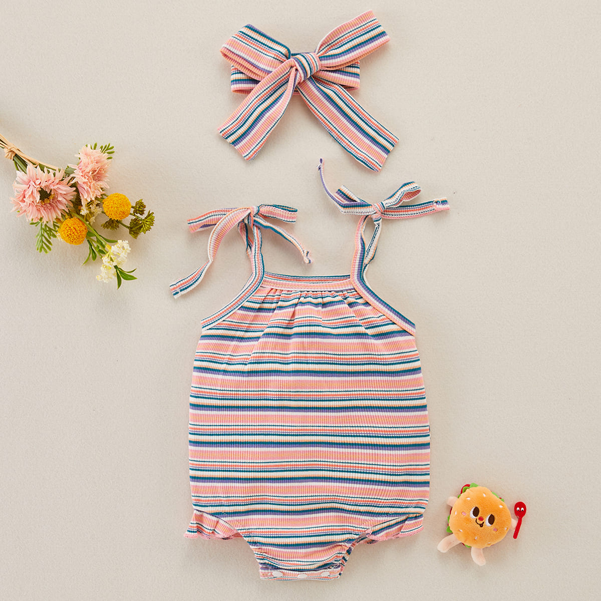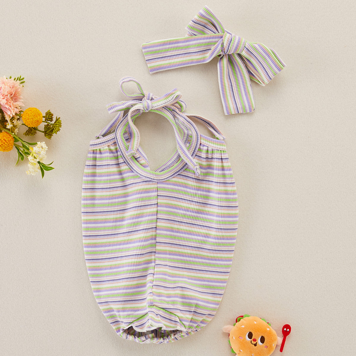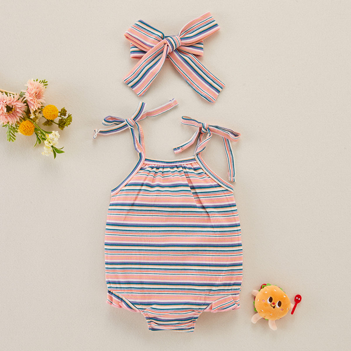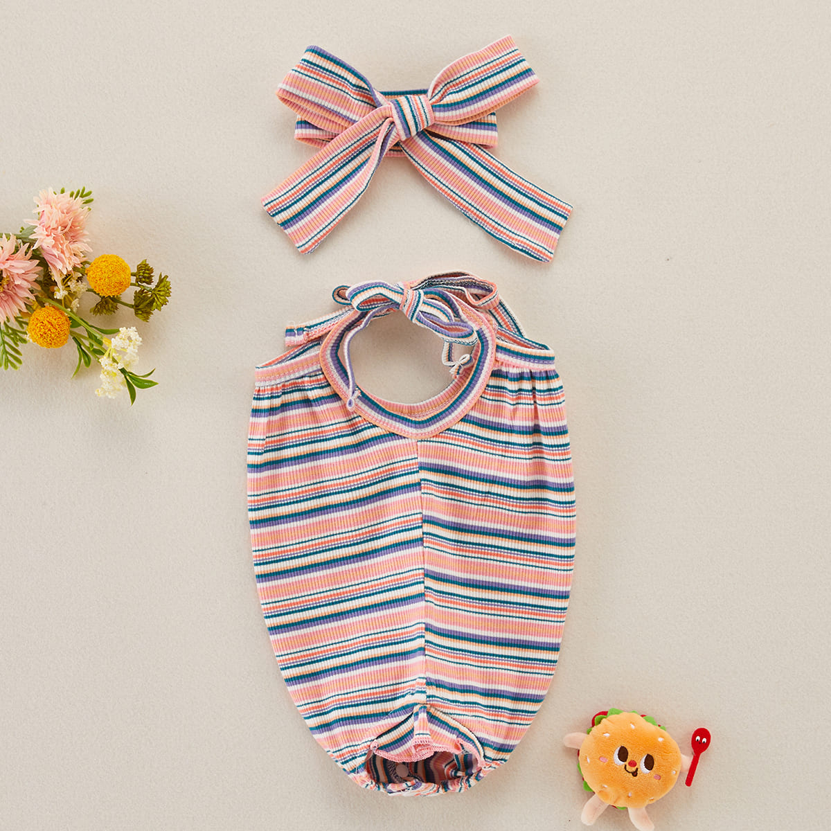 Baby Girl 2 Pieces Stripes Pattern Bodysuit & Headband Wholesale