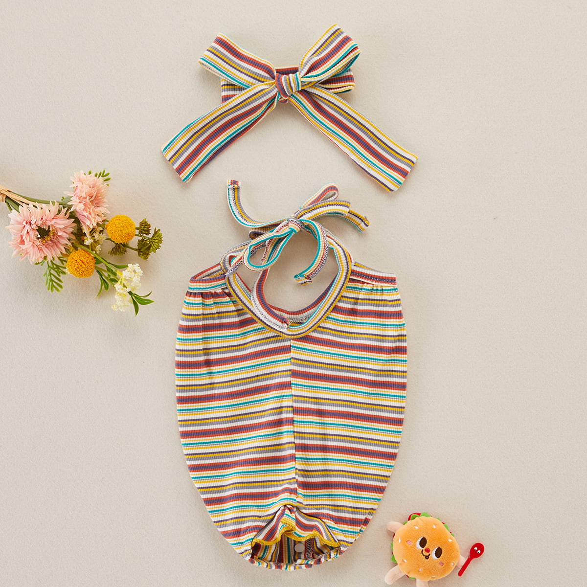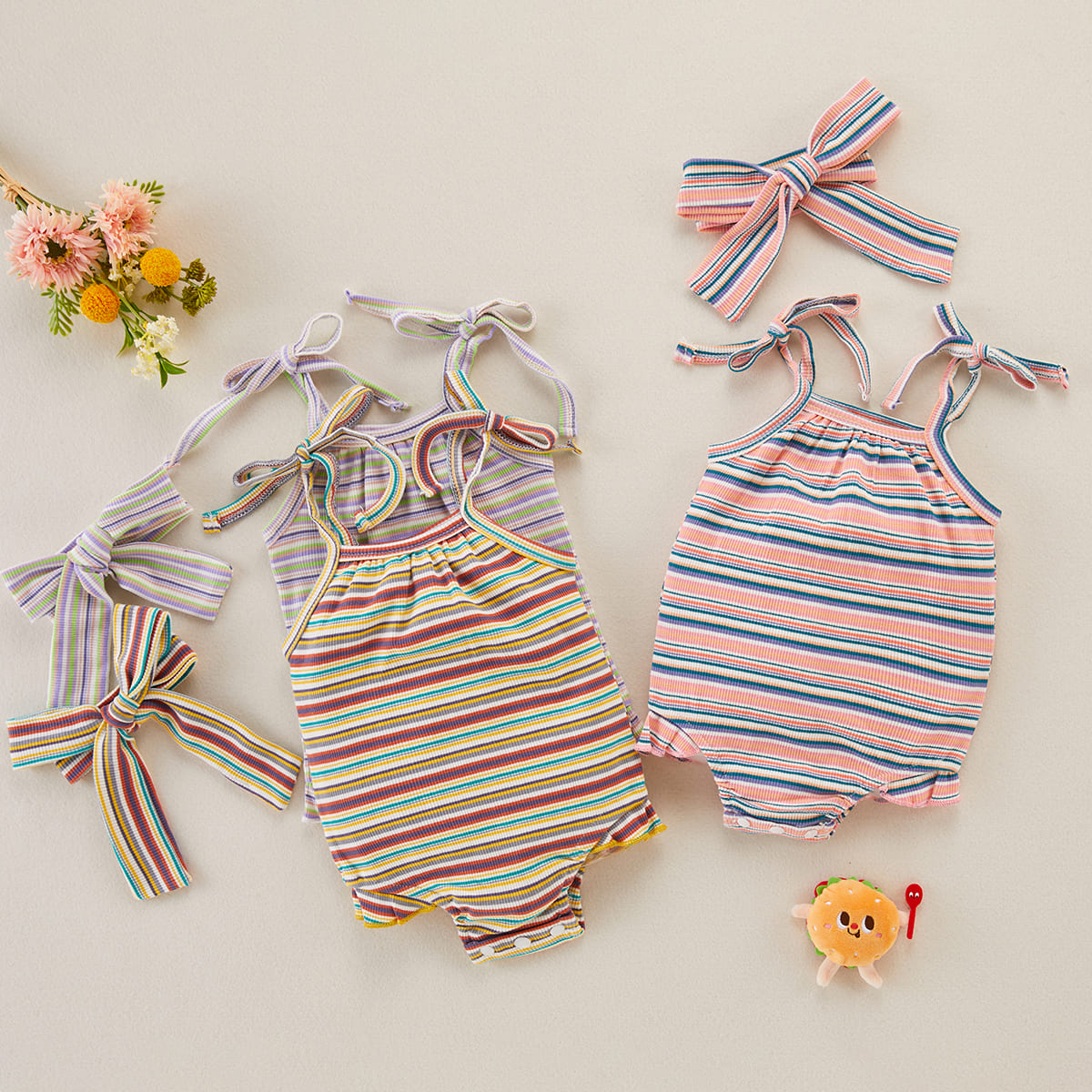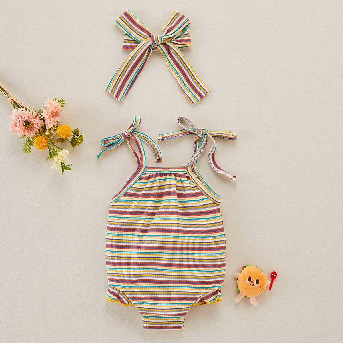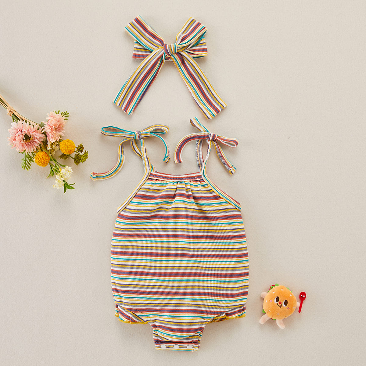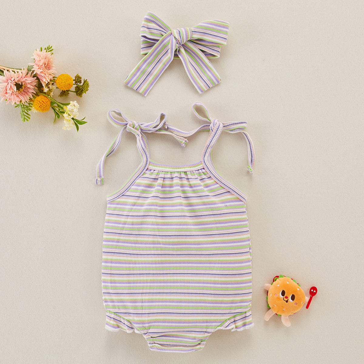 Baby Girl 2 Pieces Stripes Pattern Bodysuit & Headband Wholesale