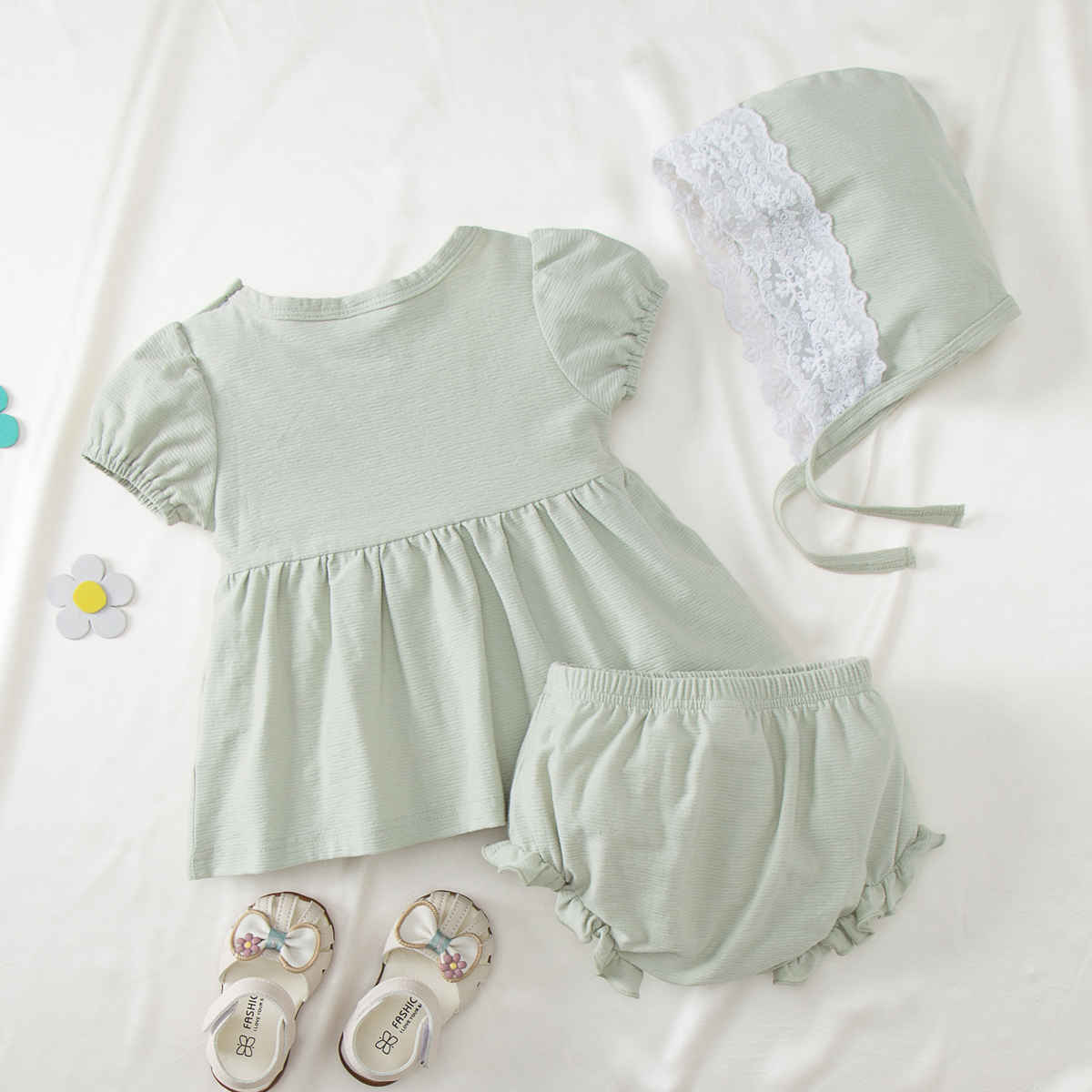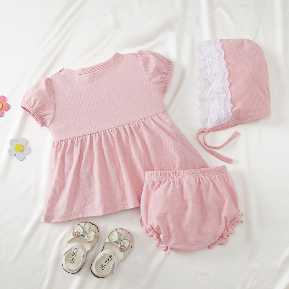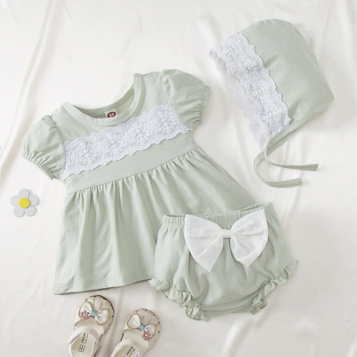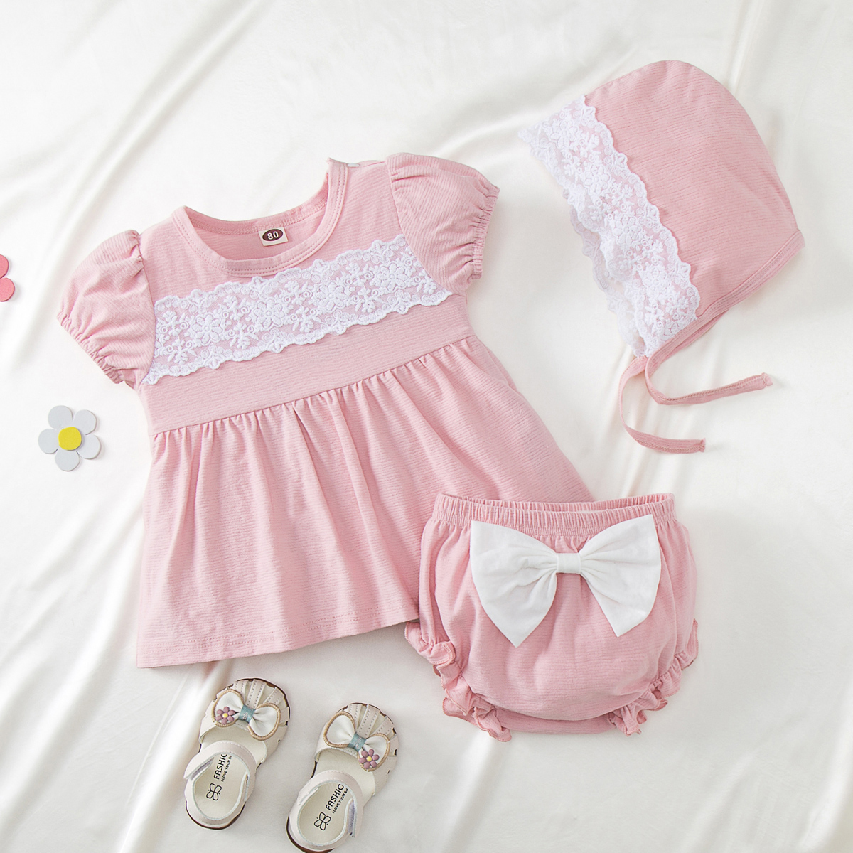 Baby Girl 3 Pieces Lace Decor Top & Bow-knot Shorts & Sun Hat Wholesale