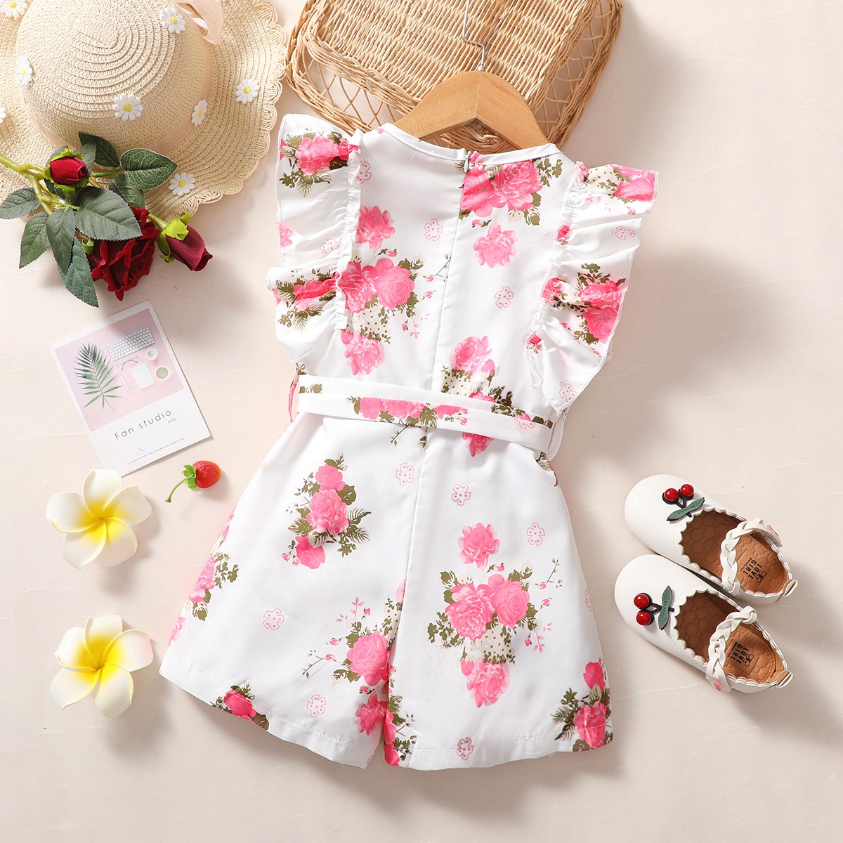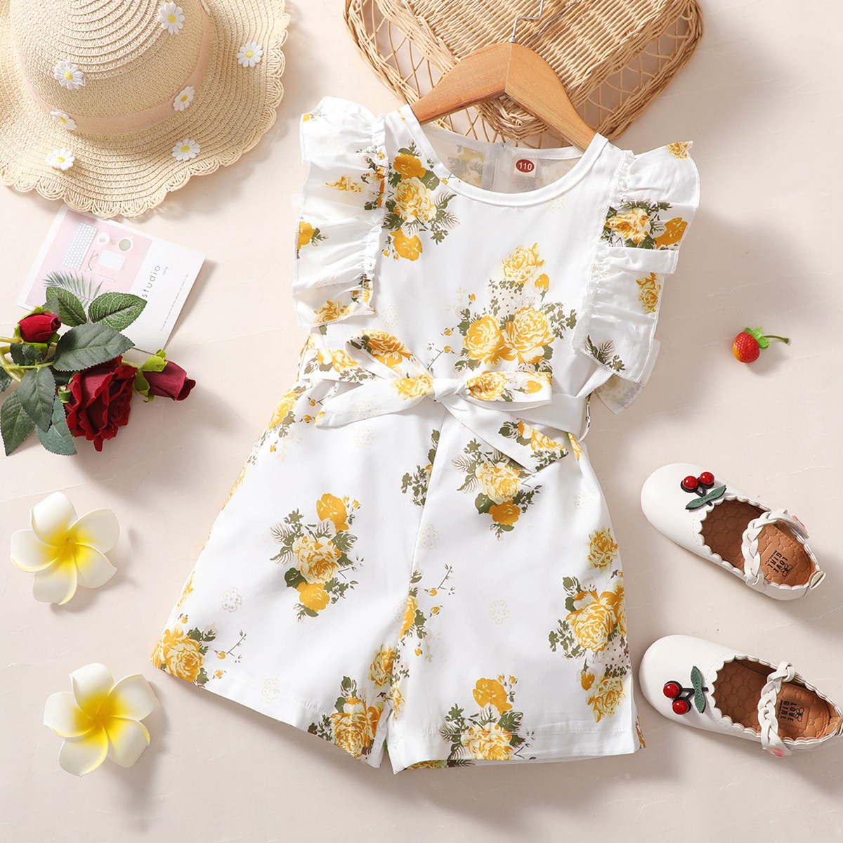 Baby Girl Beautiful Ruffle Floral Print Overalls WIth Belt Wholesale