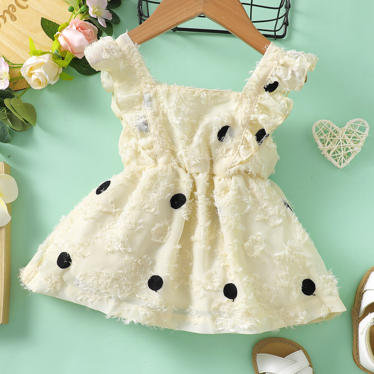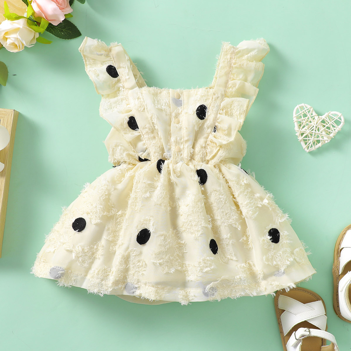 Baby Girl Beautiful Ruffle-sleeve Polka Dot Dress Wholesale