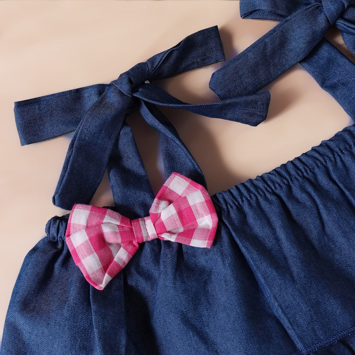Baby Girl Bow-knot Ruffle Decor Top & Plaid Shorts & Headband Wholesale