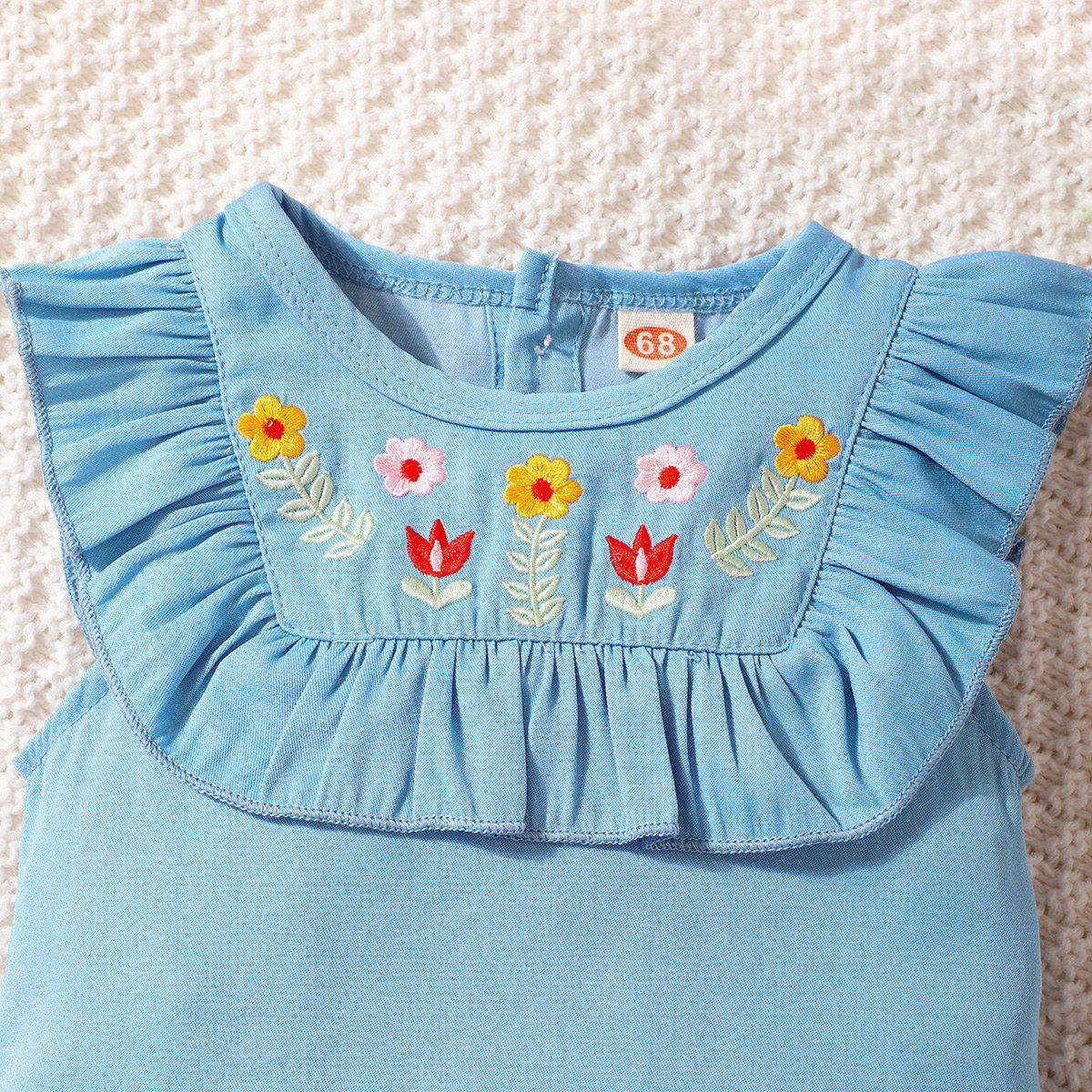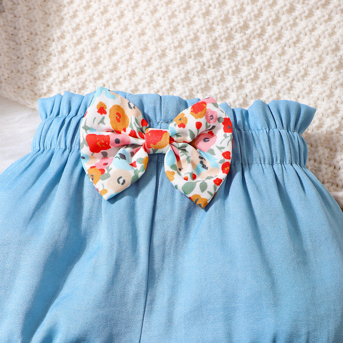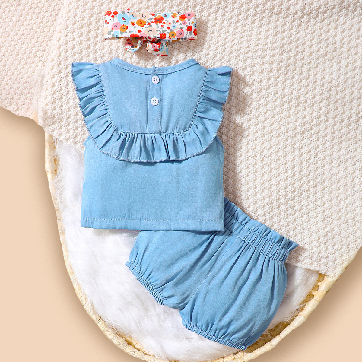 Baby Girl Floral Embroidered Ruffle-sleeve T-Shirt & Bow-knot Shorts & Headband Wholesale