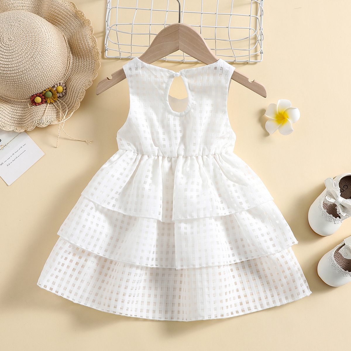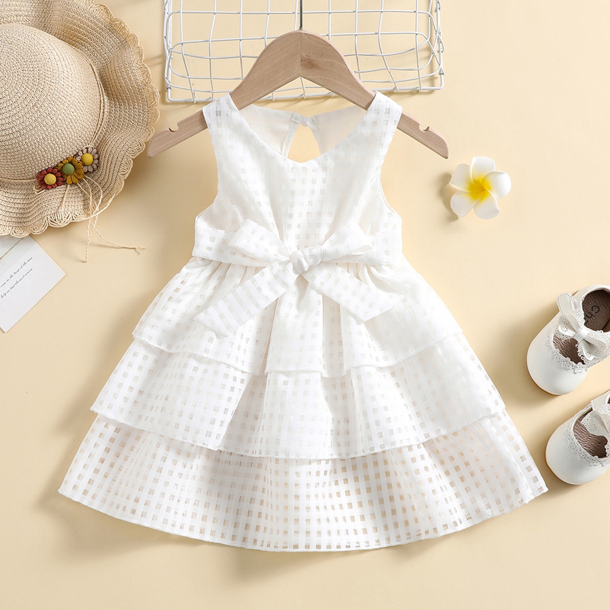 Baby Girl Organza Fabric Bow-knot Decor Tiered Dress Wholesale