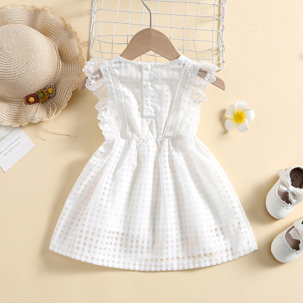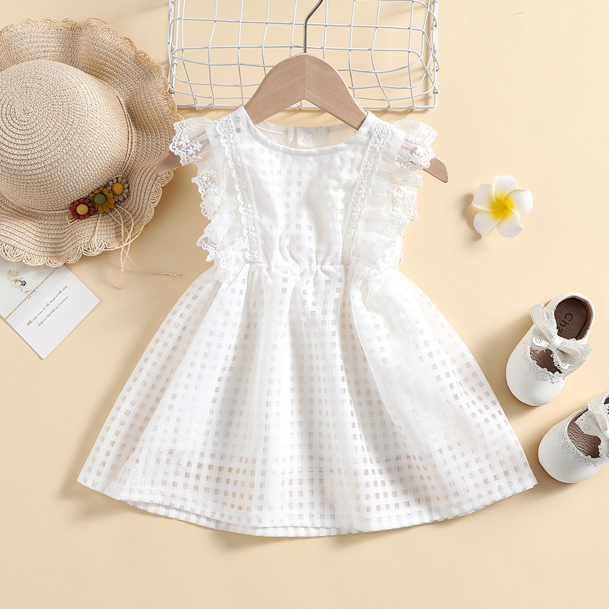Baby Girl Organza Fabric Lace Decor Dress Wholesale