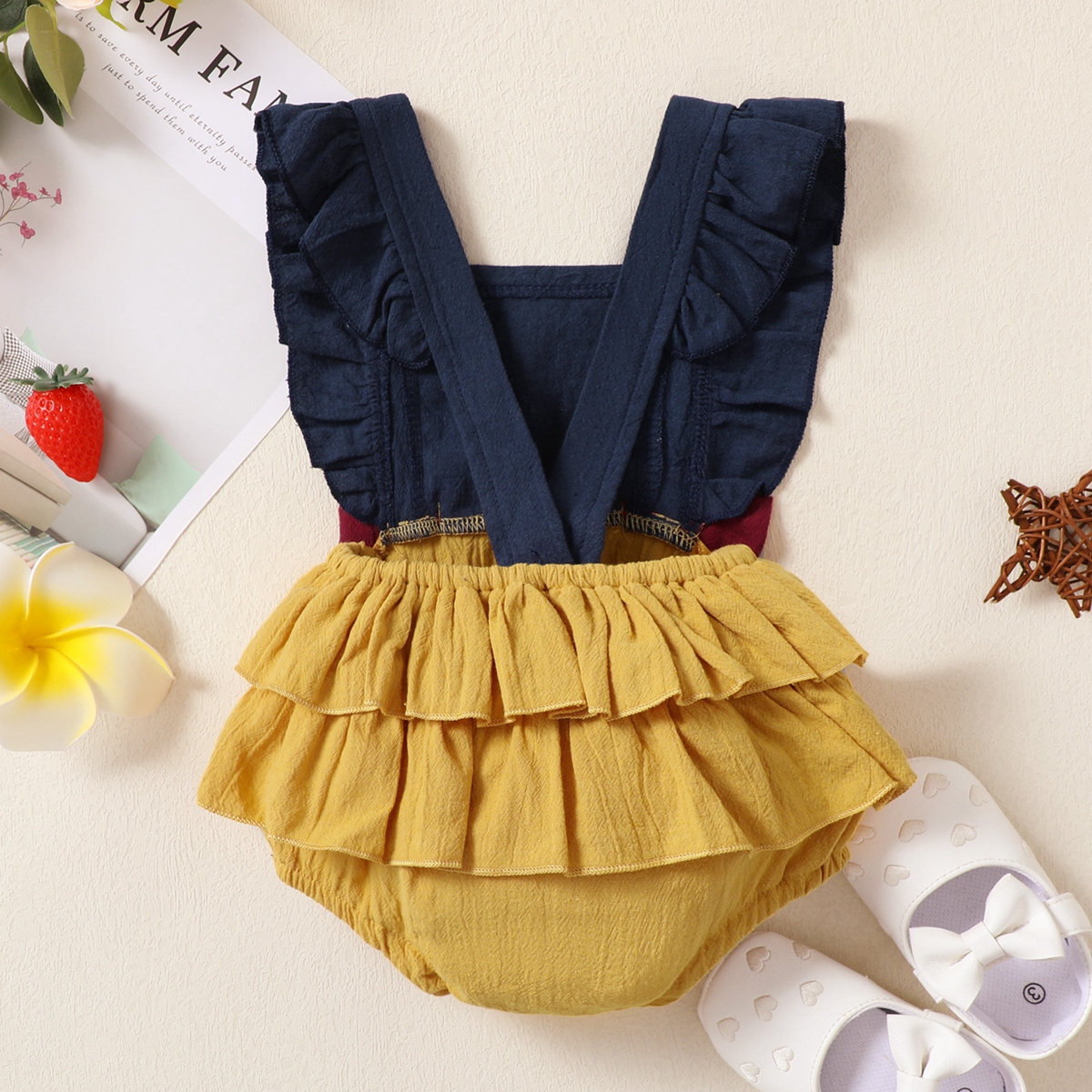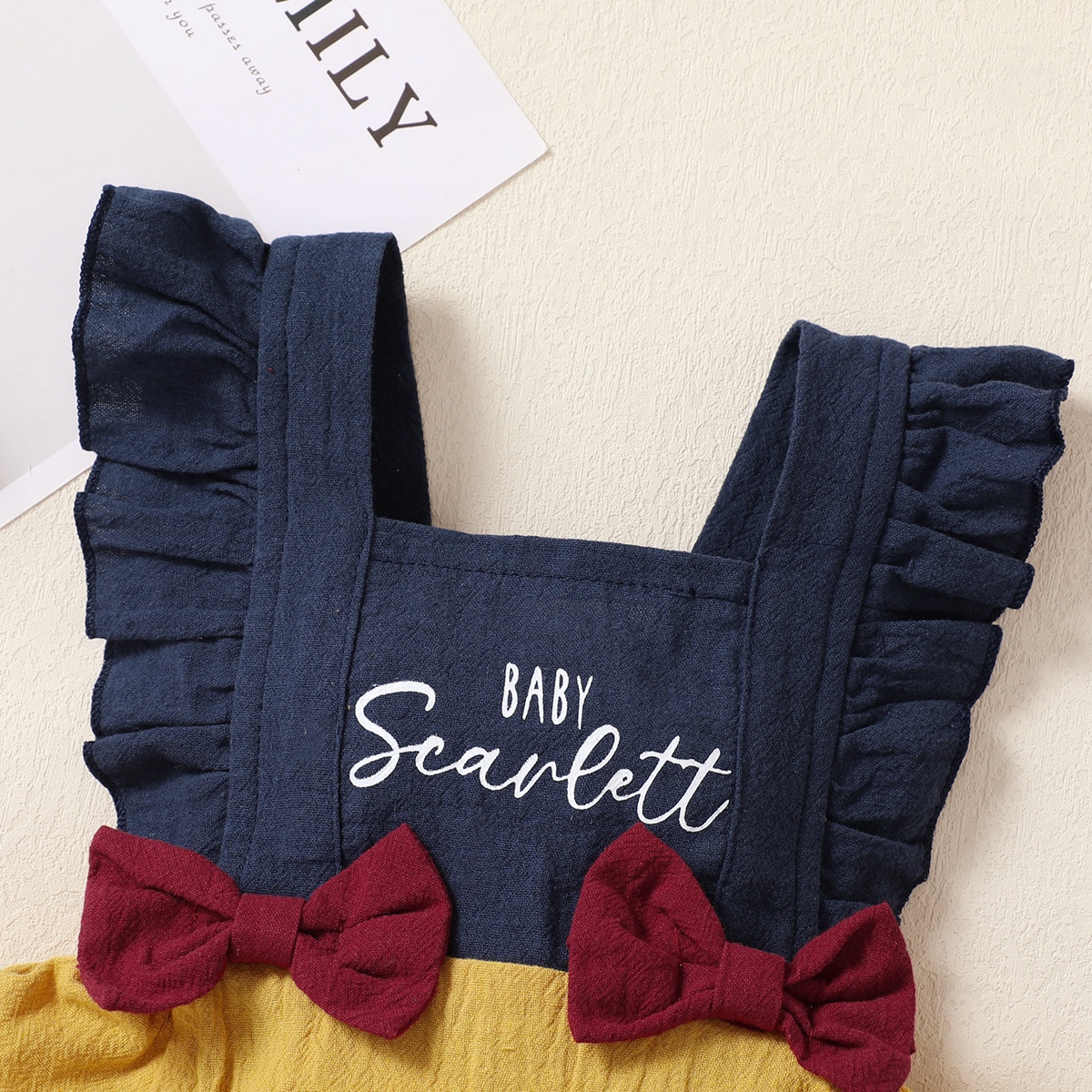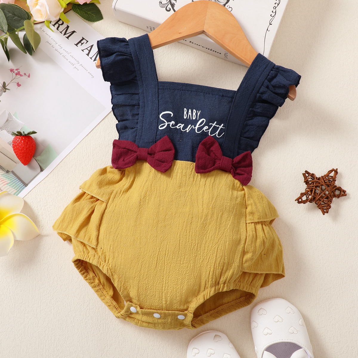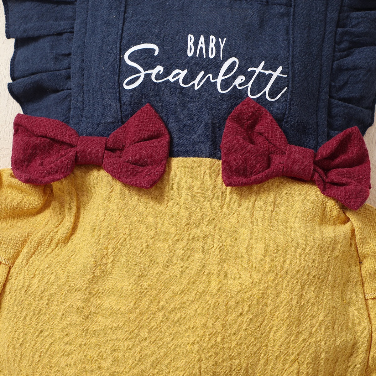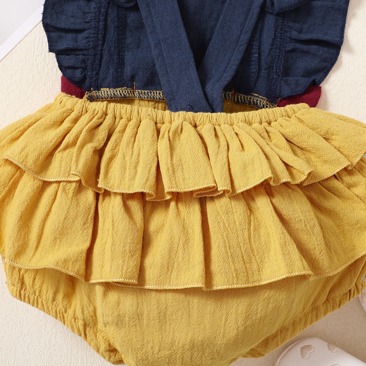 Baby Girl Ruffle Sleeve Bowknot Color-block Bodysuit Wholesale
