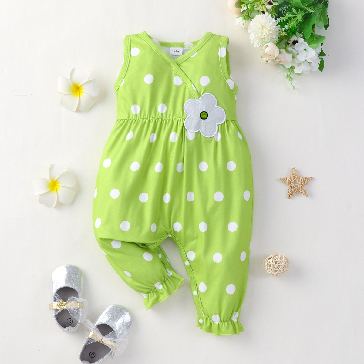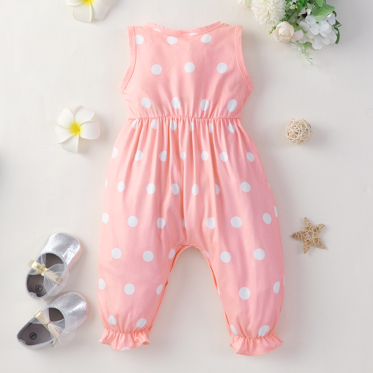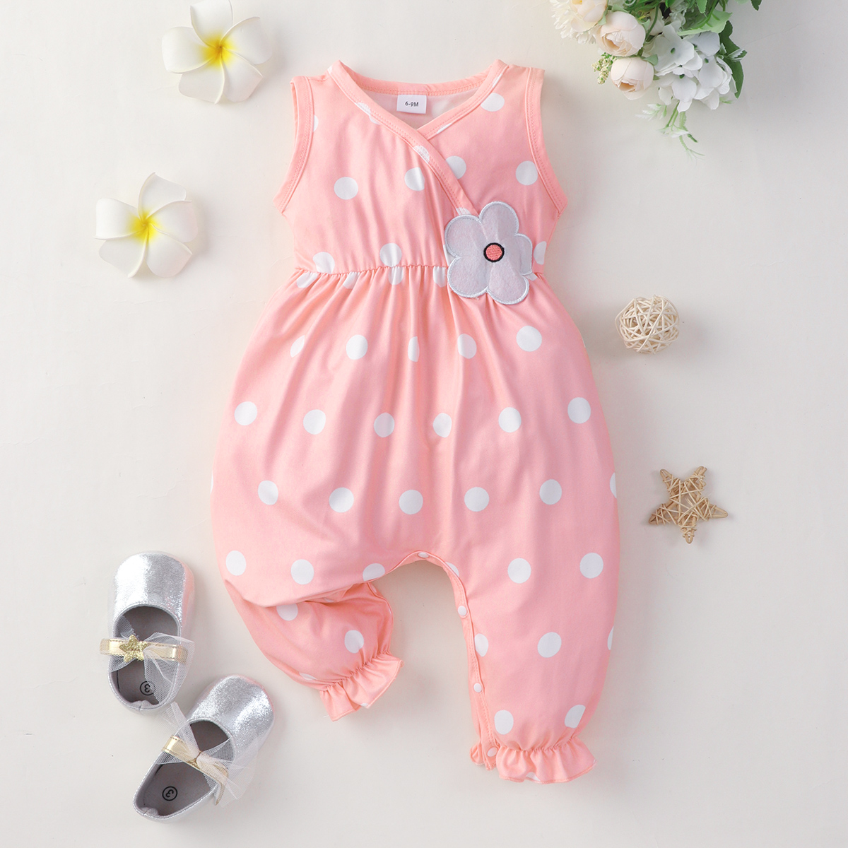 Baby Girl Sleeveless Polka Dot Patchwork Flower Jumpsuit Wholesale