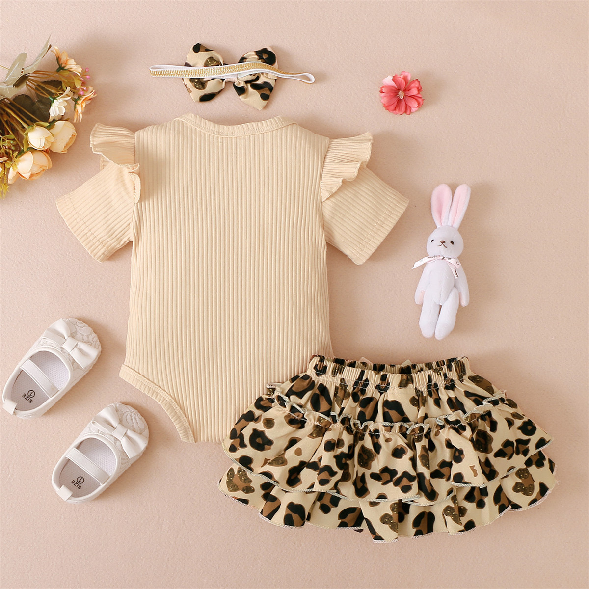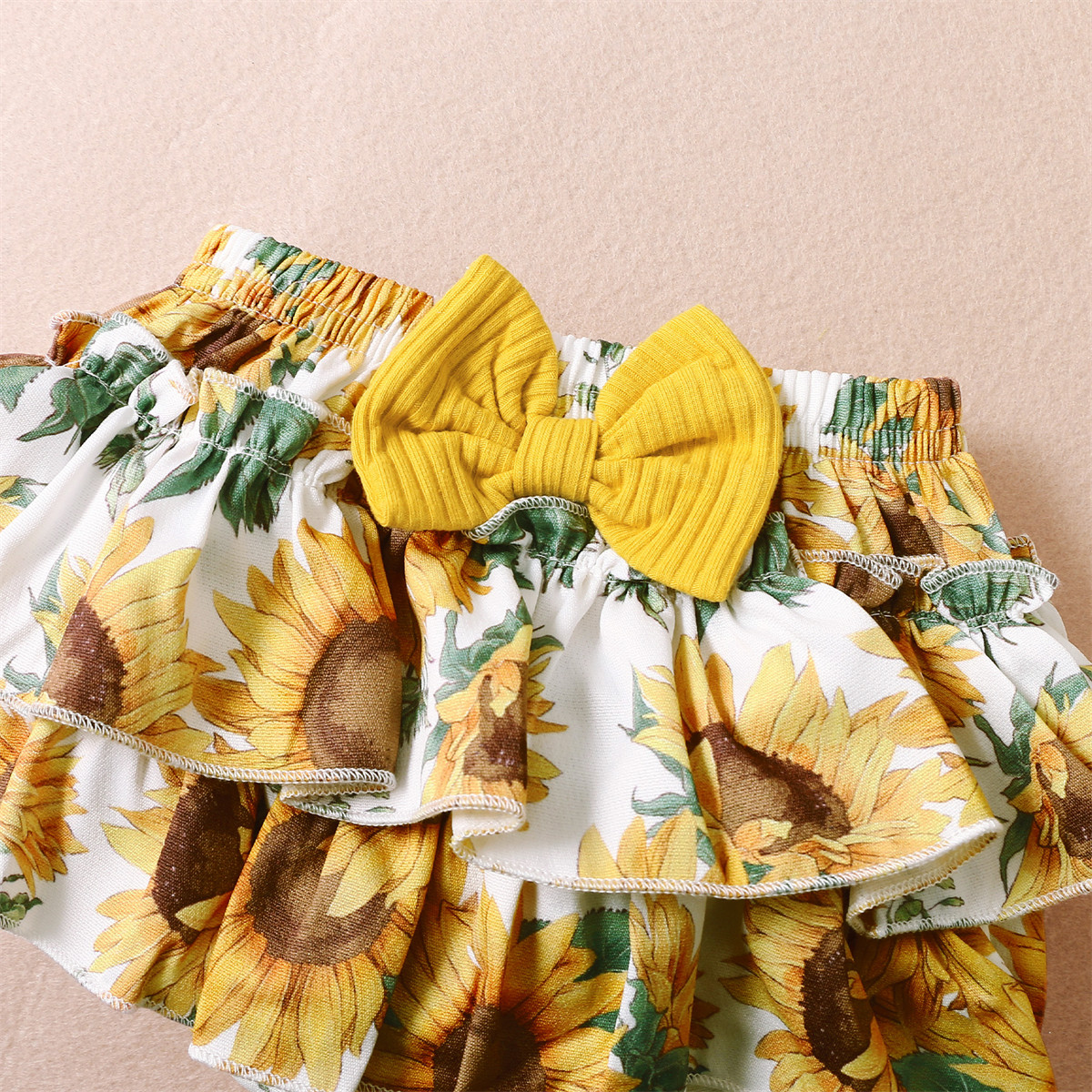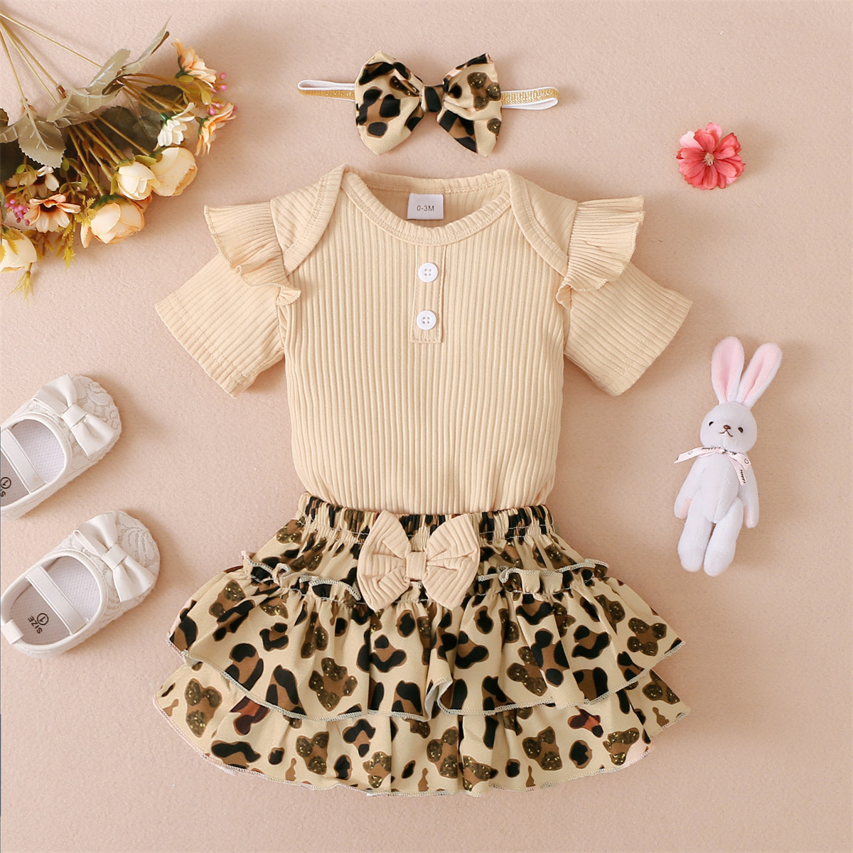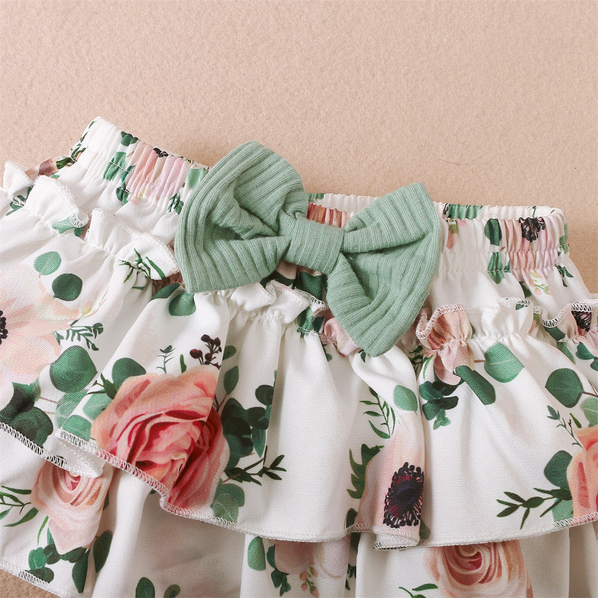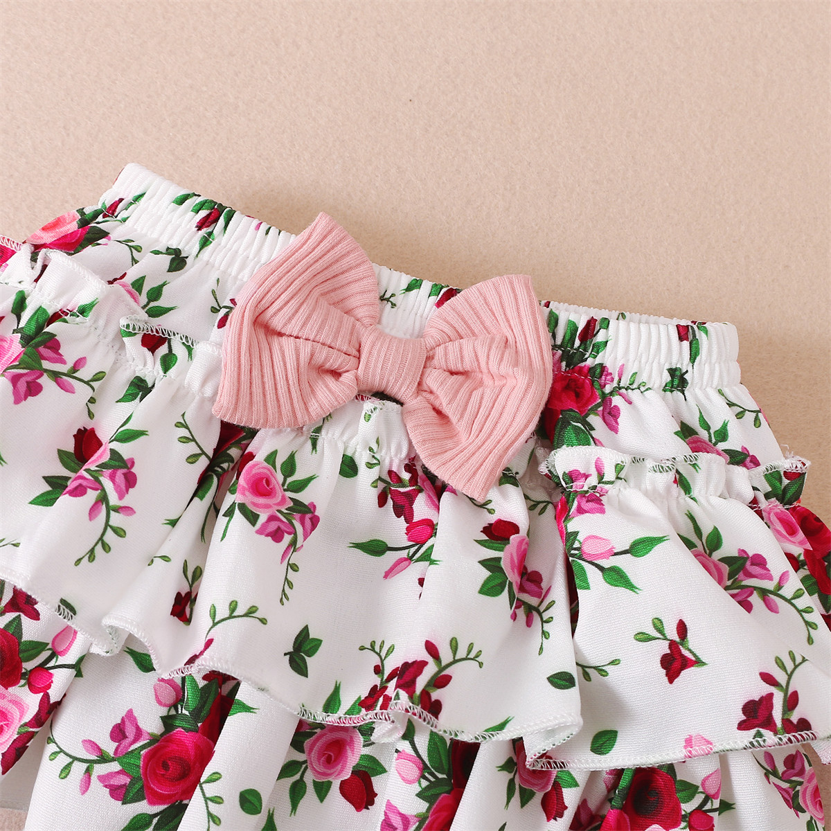Baby Girl Solid Color Bodysuit & Floral Pattern Shorts & Headband Wholesale