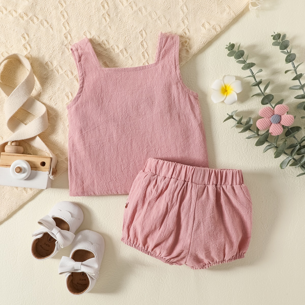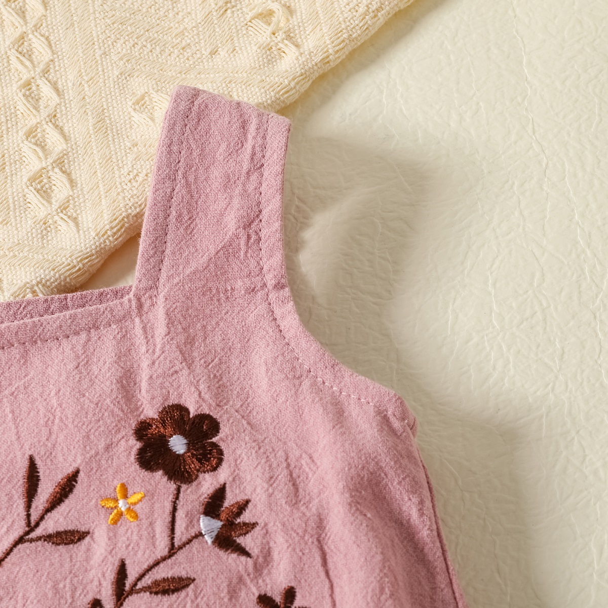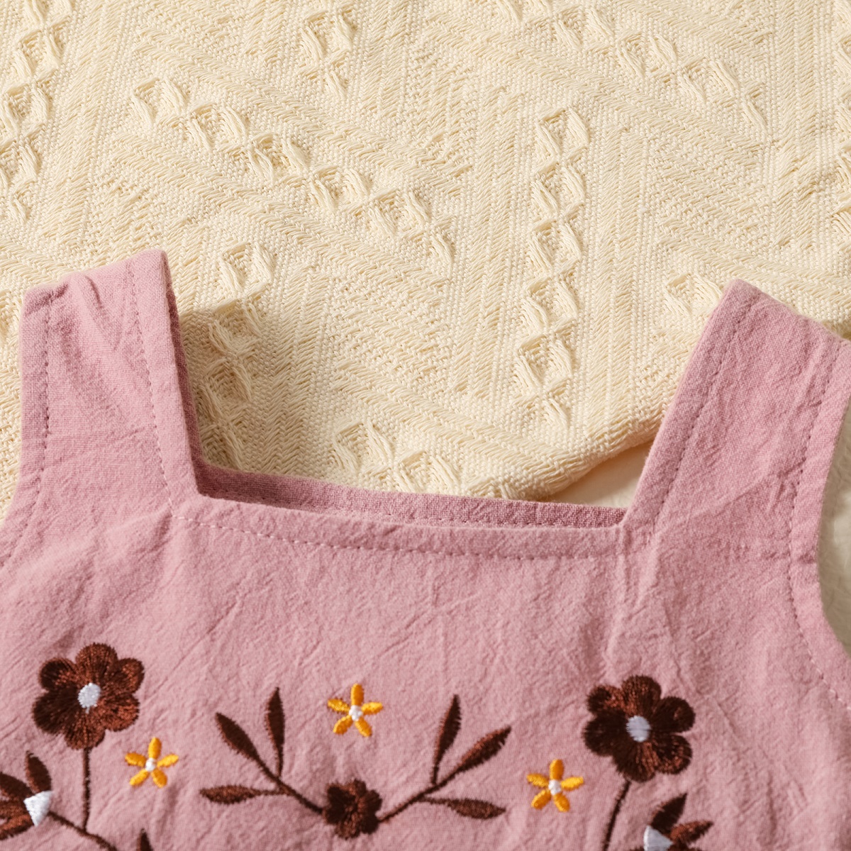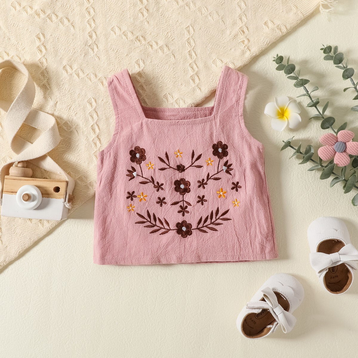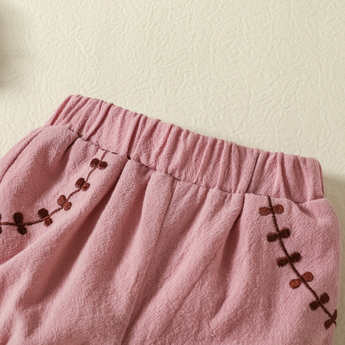 Baby Girl Solid Color Embroidered Floral Top & Shorts Wholesale