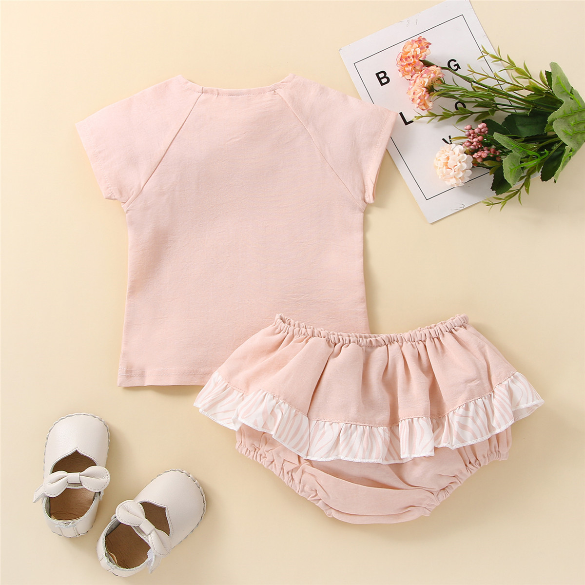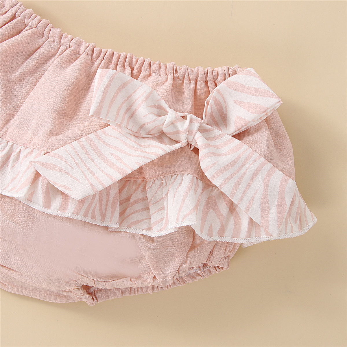 Baby Girl Solid Color T-shirt & Ruffle Bow-knot Shorts Wholesale