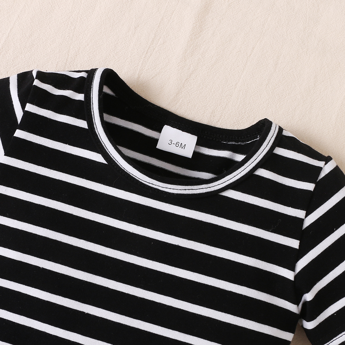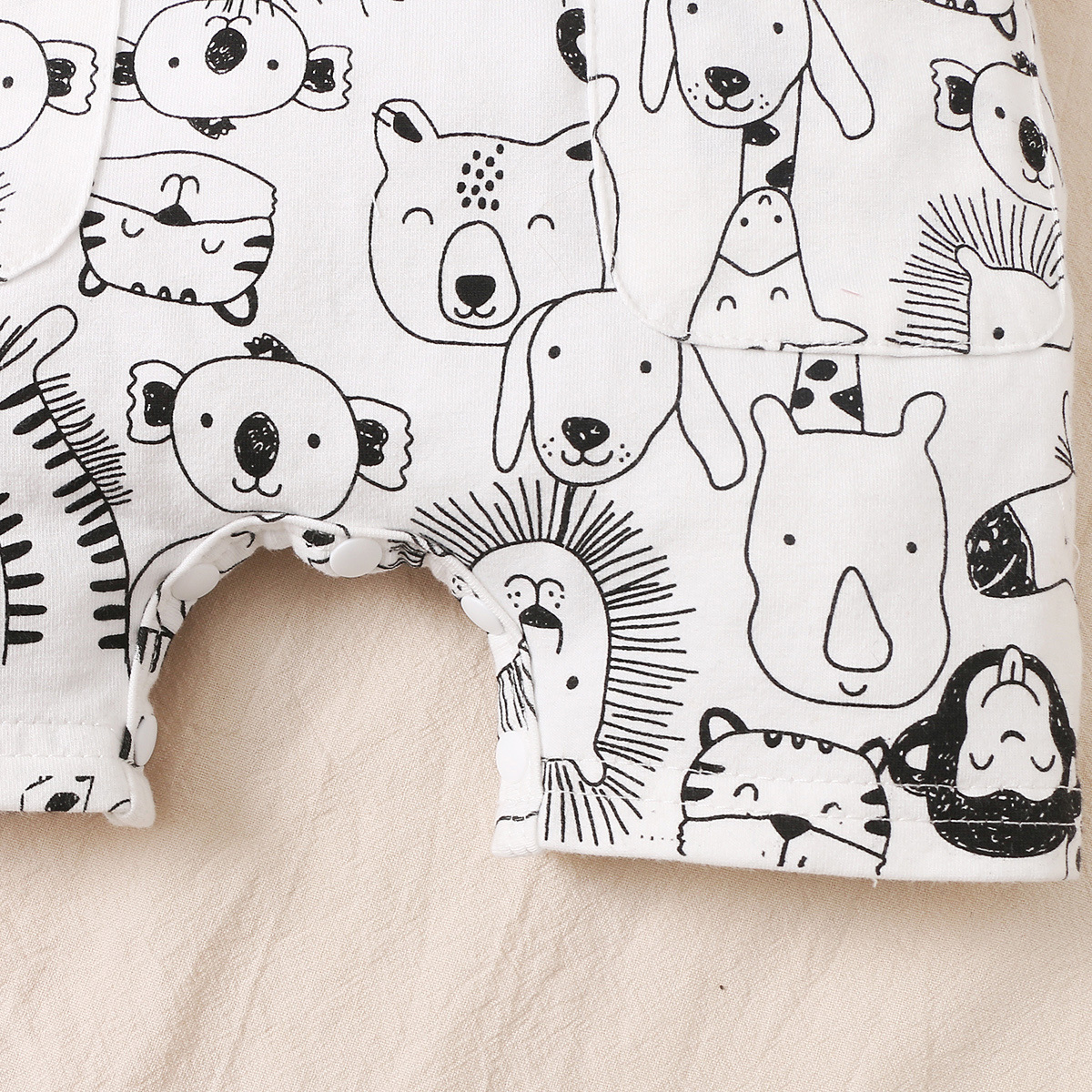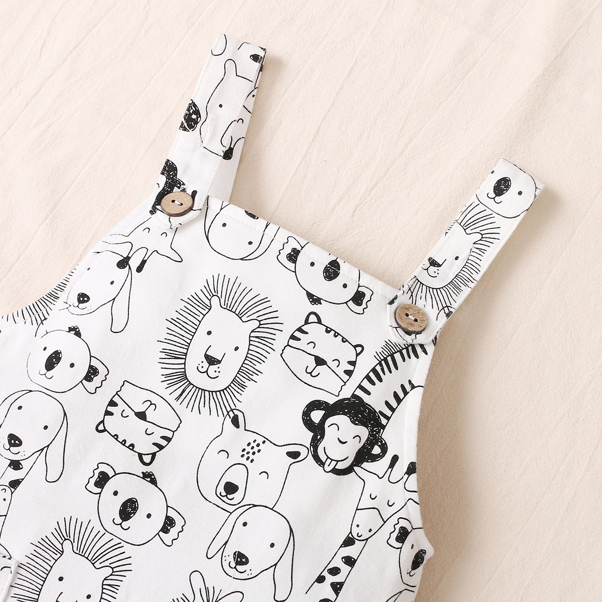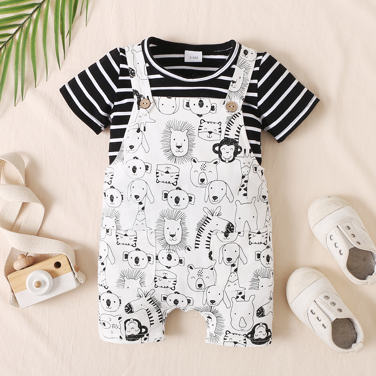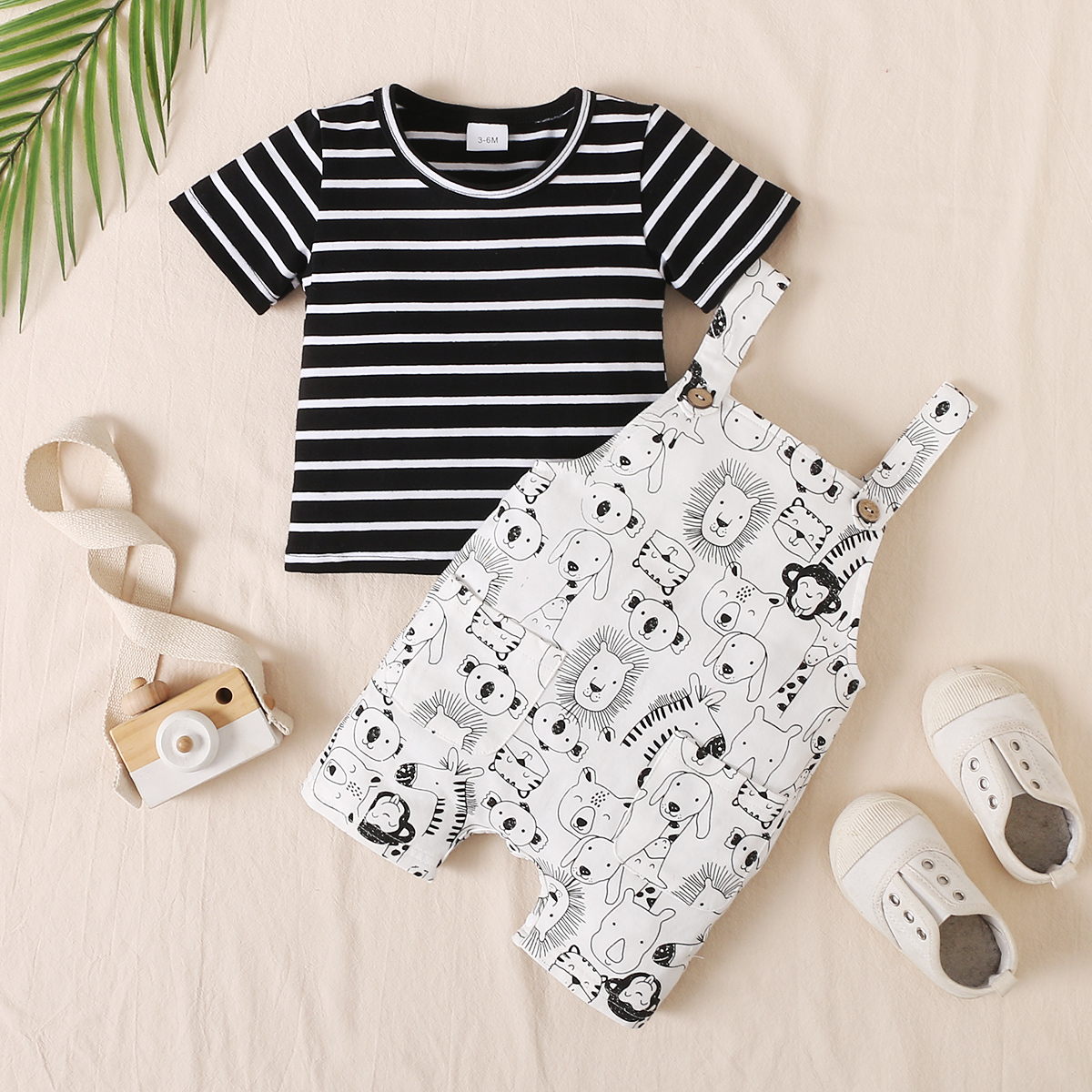 bibobi Baby Cute Animal Print Black & White Striped Strappy Trousers Set Wholesale