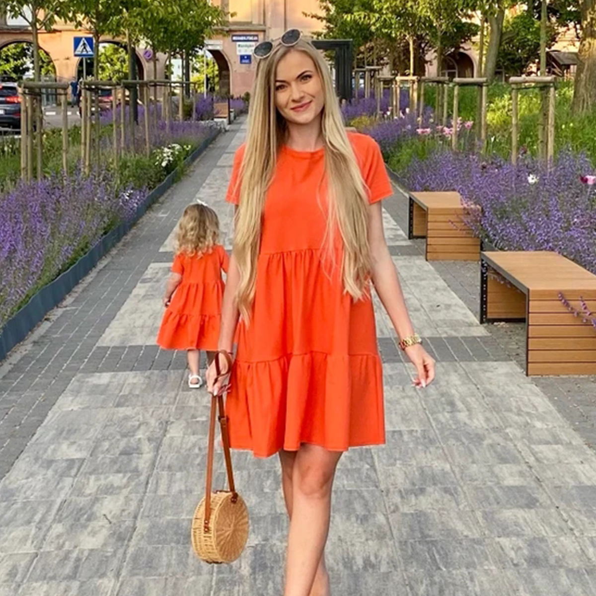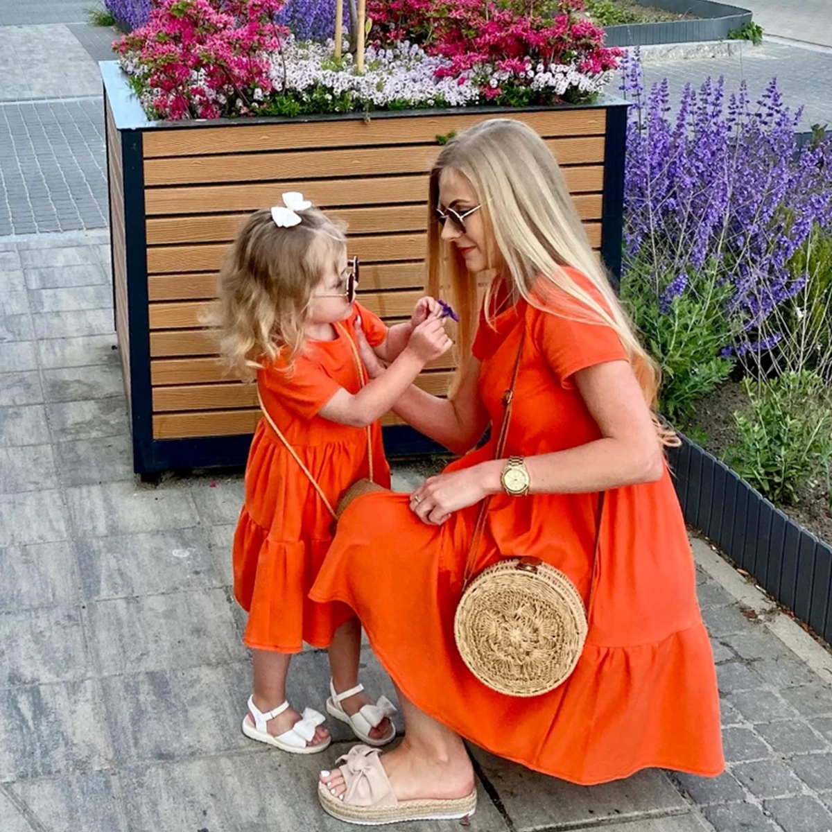 Causal Solid Color Short Sleeve Long Dress for Mom and Me Wholesale