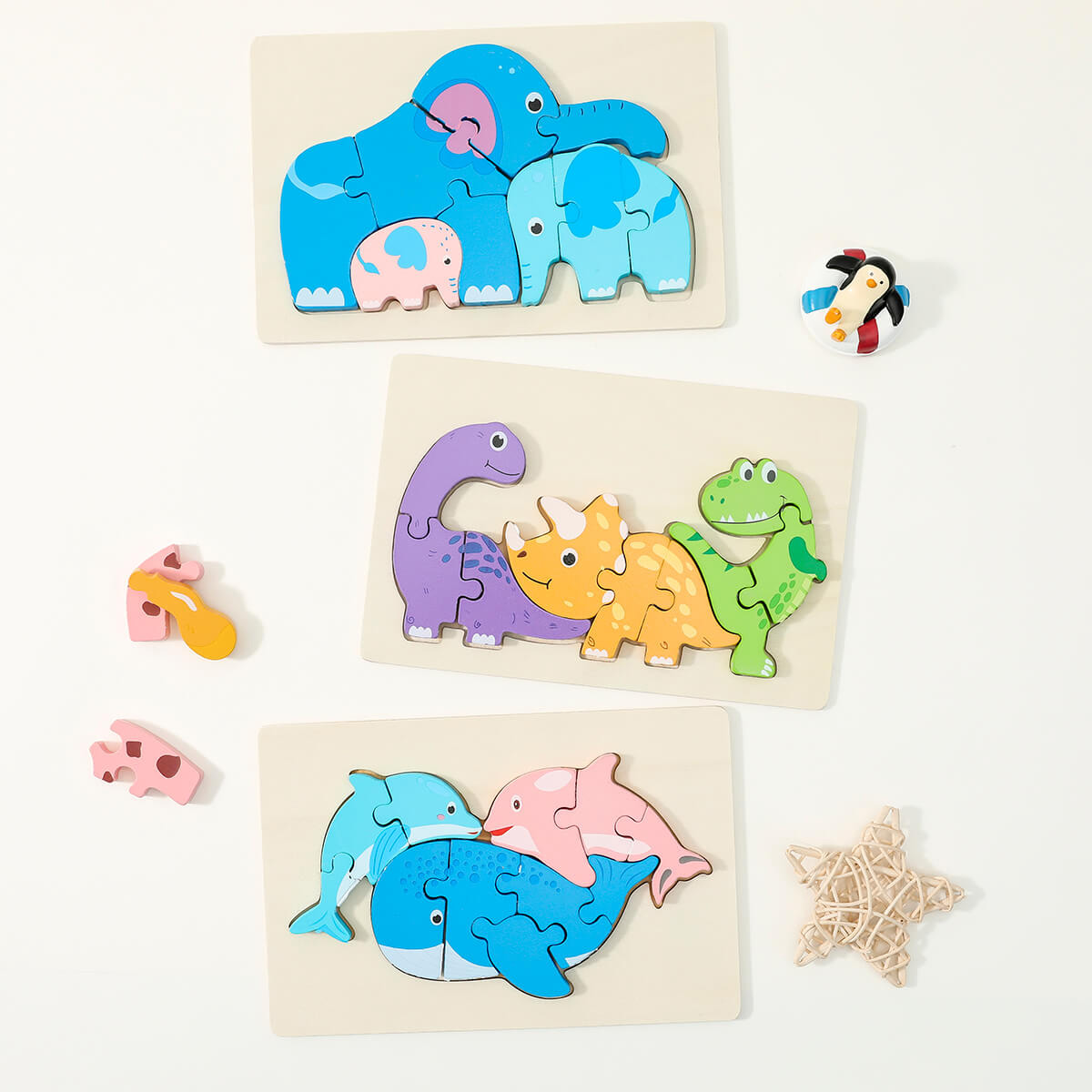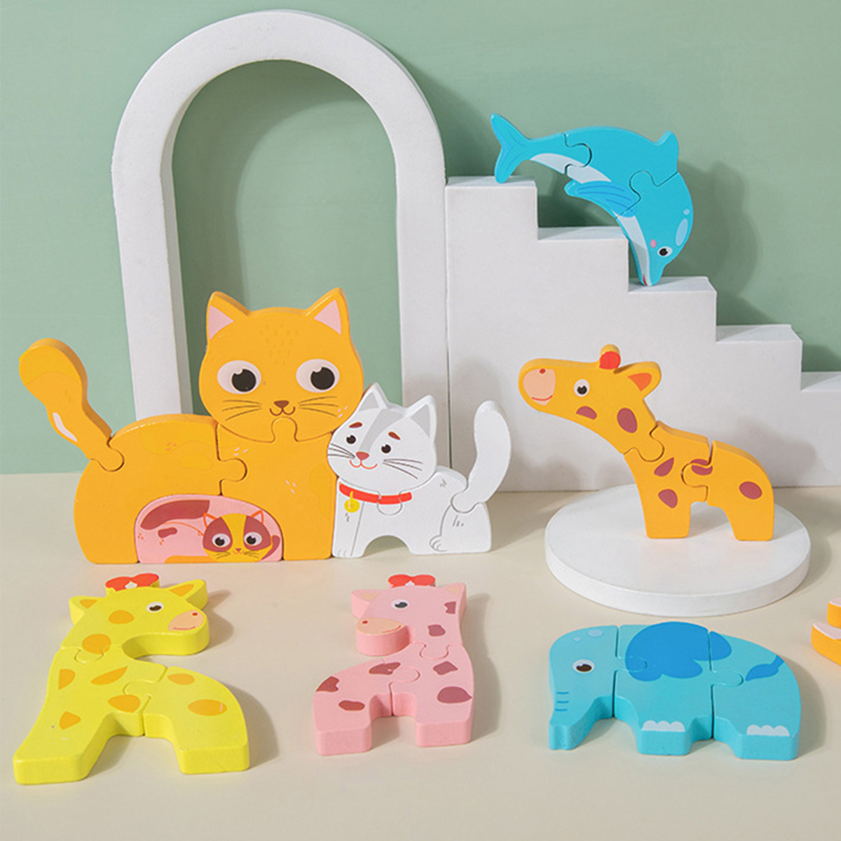 Early education three-dimensional puzzle children's animals wooden toys Wholesale