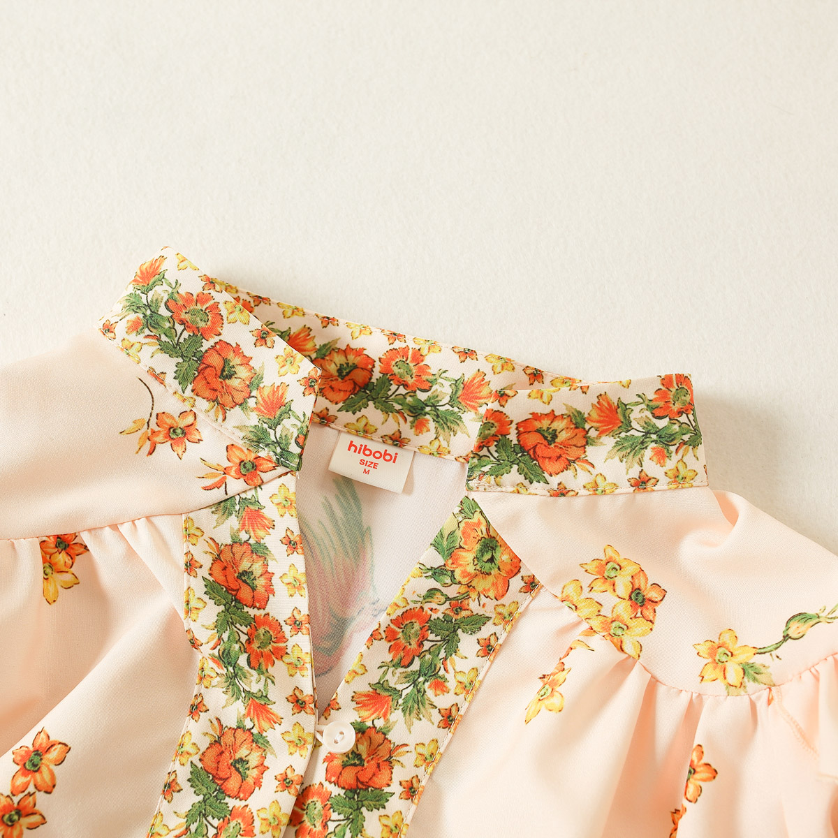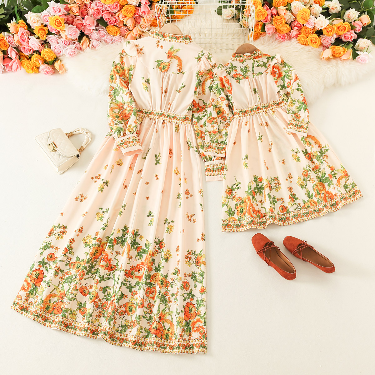 Elegant Floral Print Long Sleeve Dress for Mom and Me Wholesale