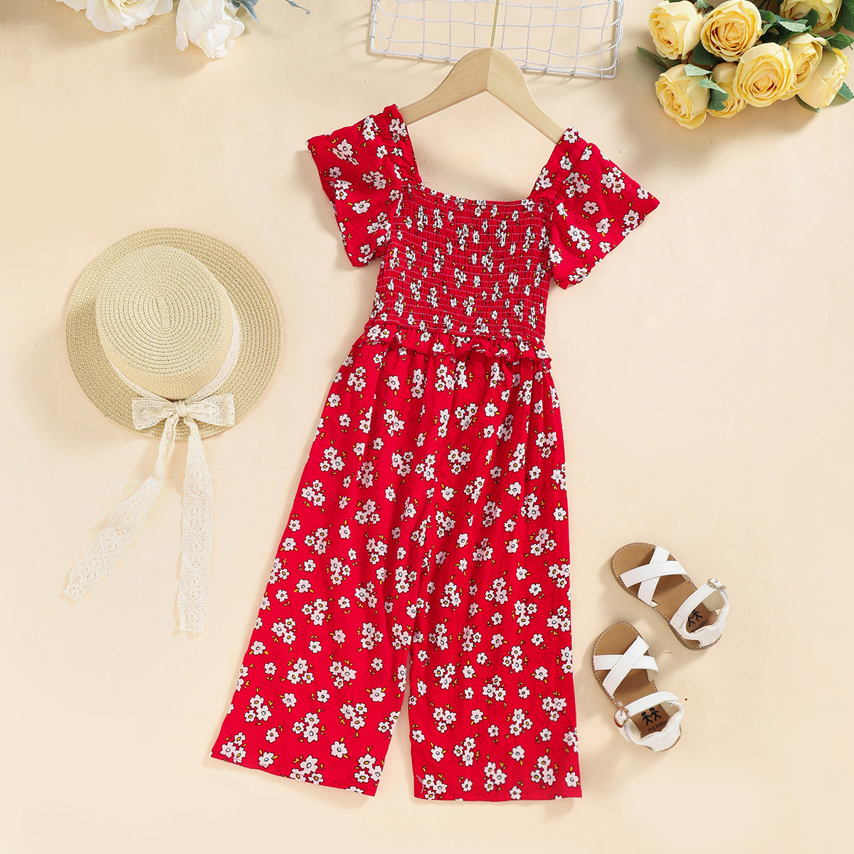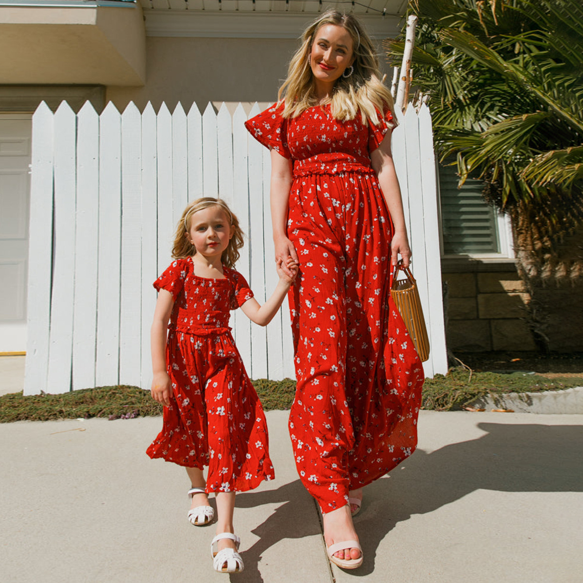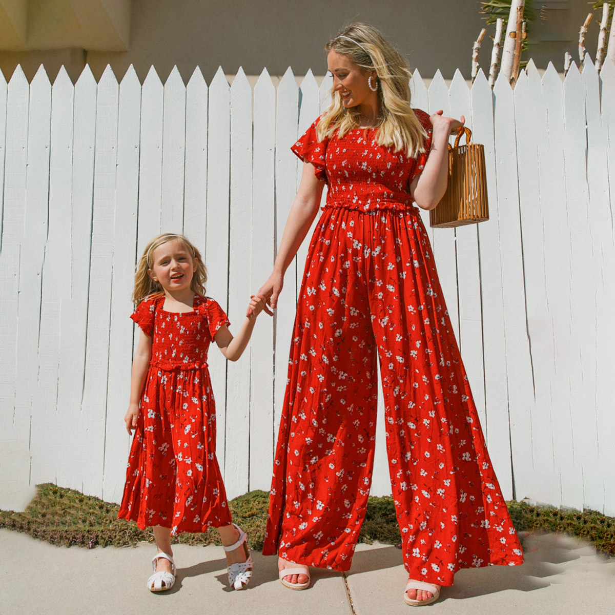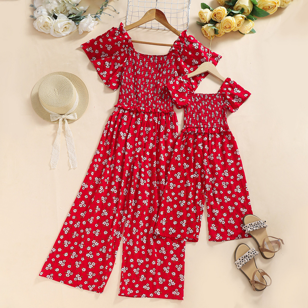 Elegant Floral Print Sling Jumpsuit for Mom and Me Wholesale