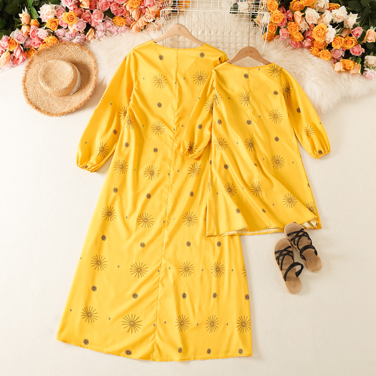 Elegant Floral Print V Neck Long Sleeve Dress for Mom and Me Wholesale