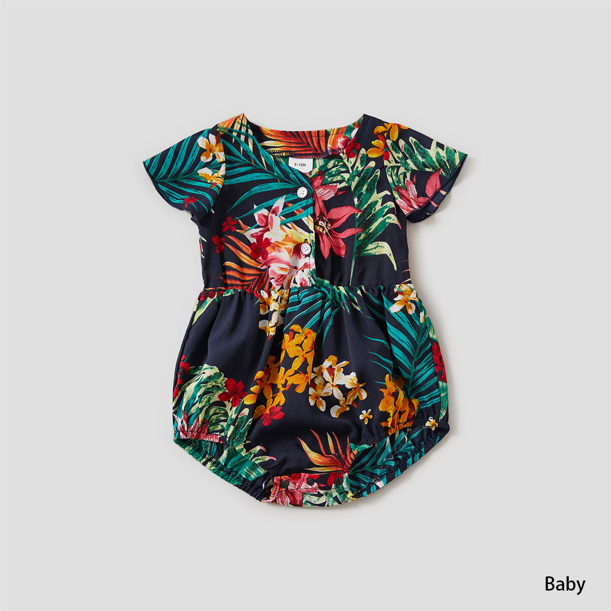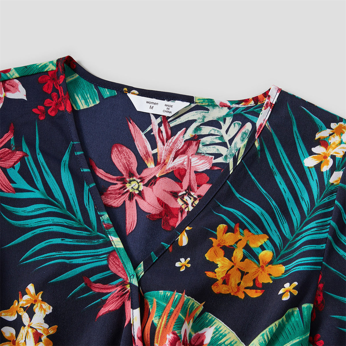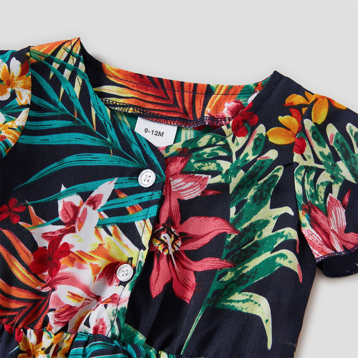 Family Matching Floral Print Short Sleeve Dress and T-shirt Wholesale