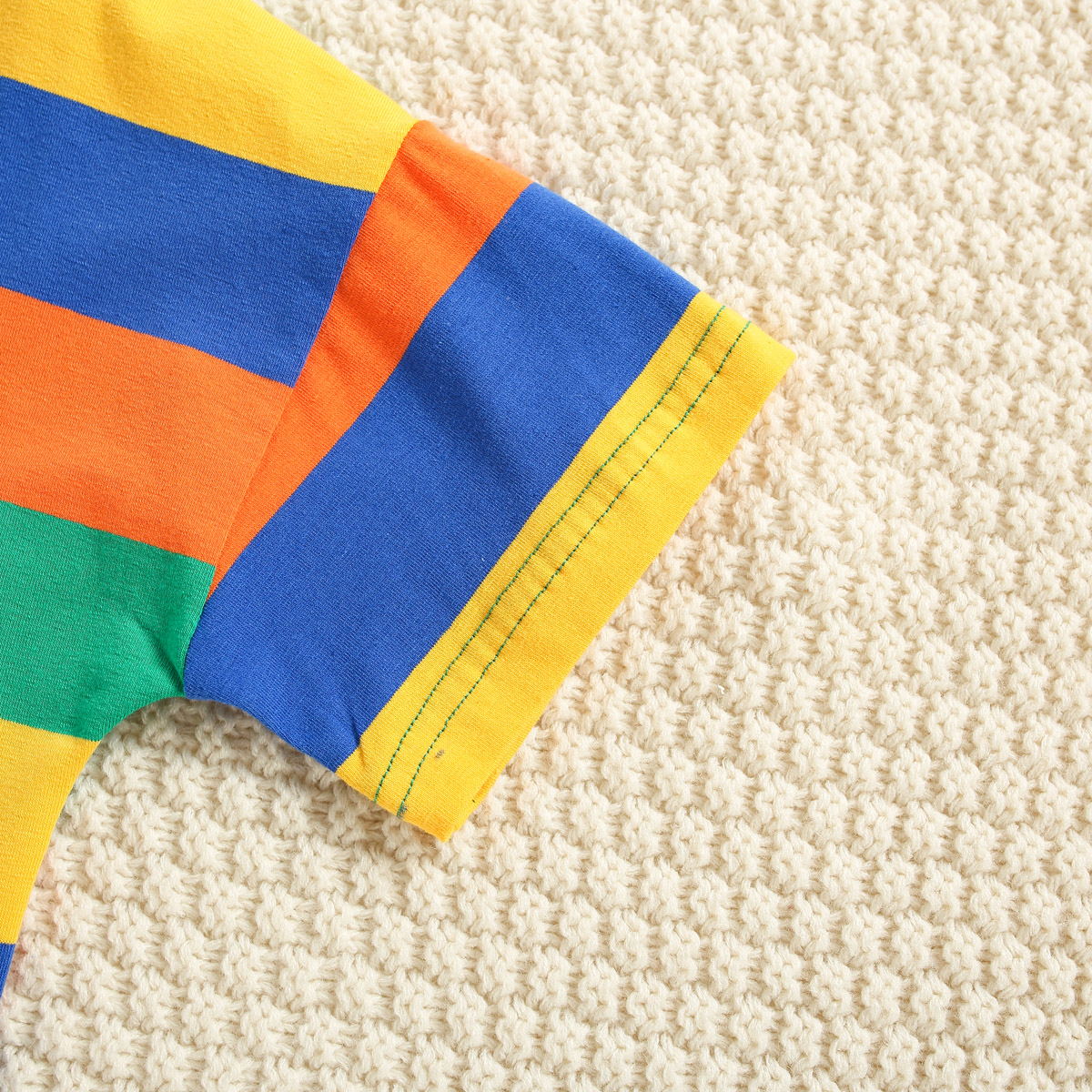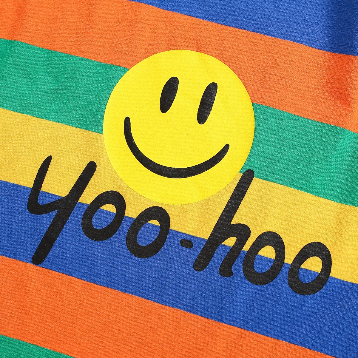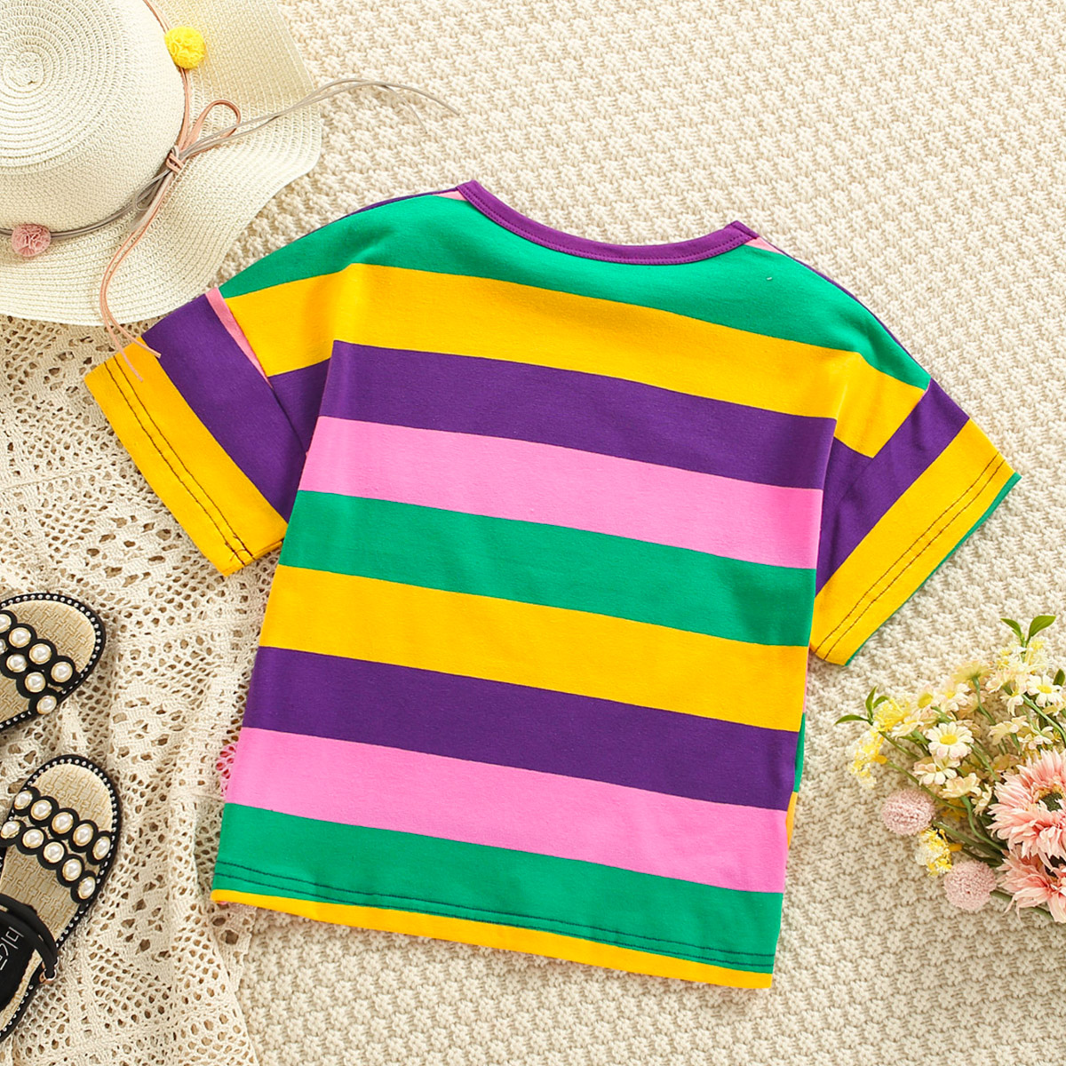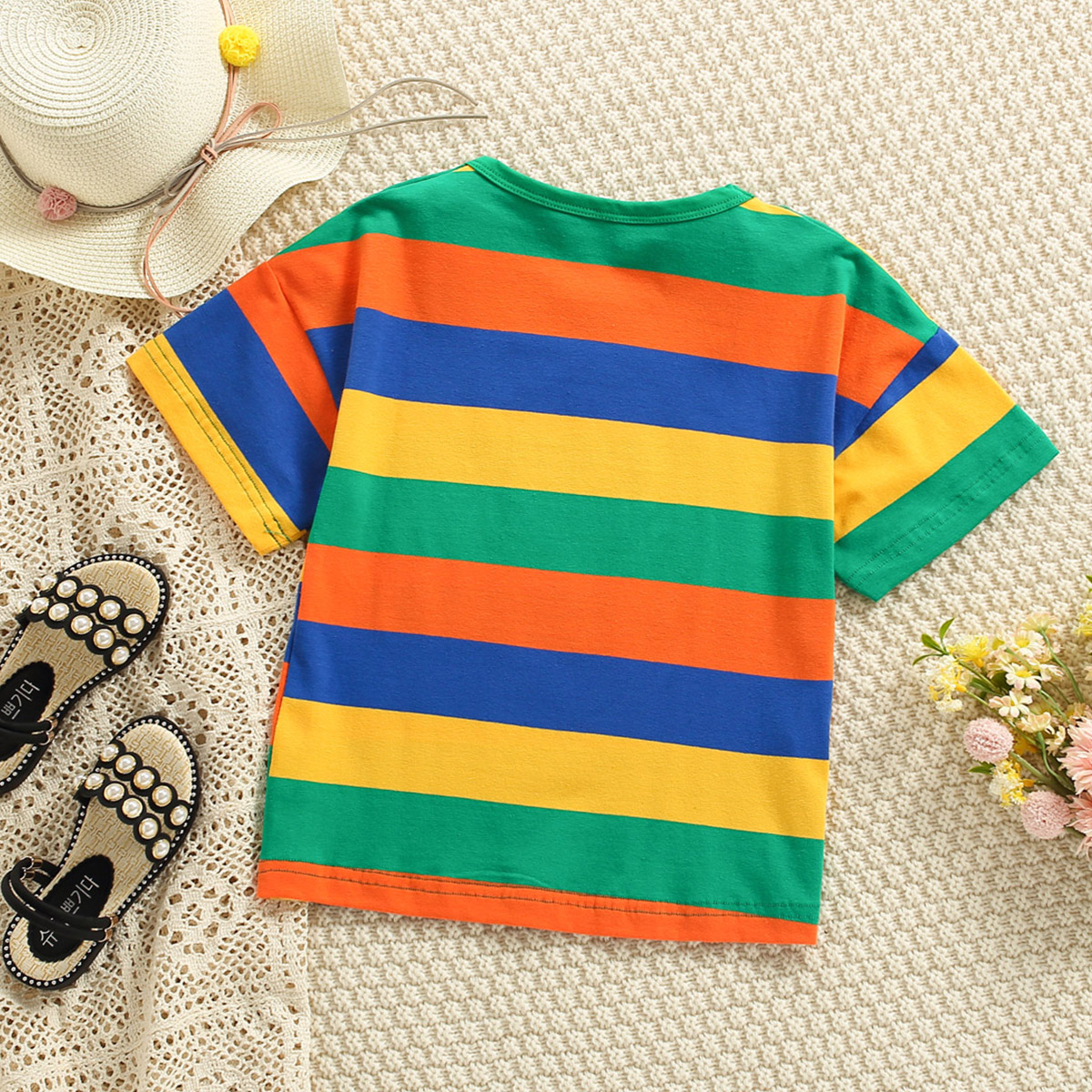 Girls Summer Color-block Rainbow Smiley Printing T-shirt Wholesale