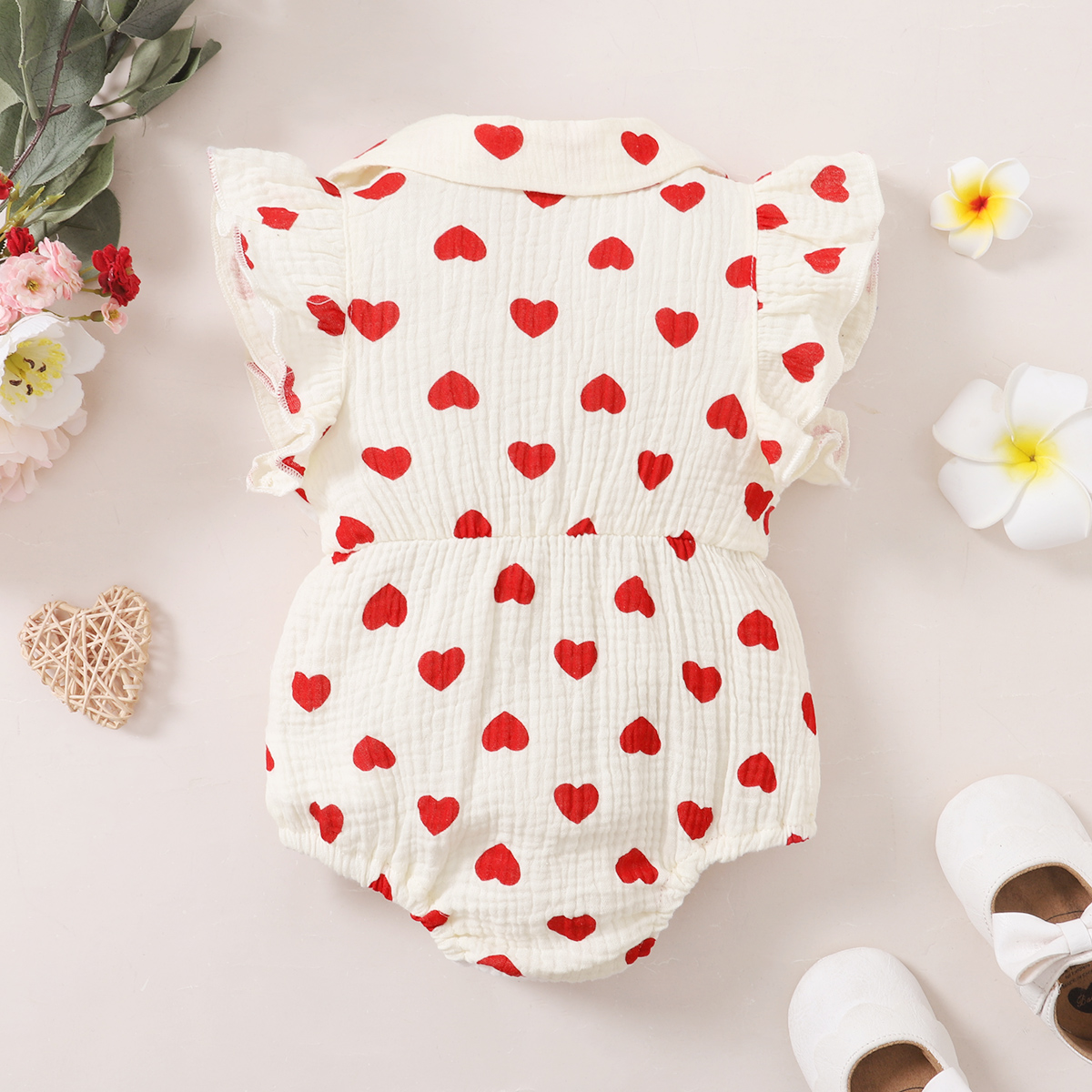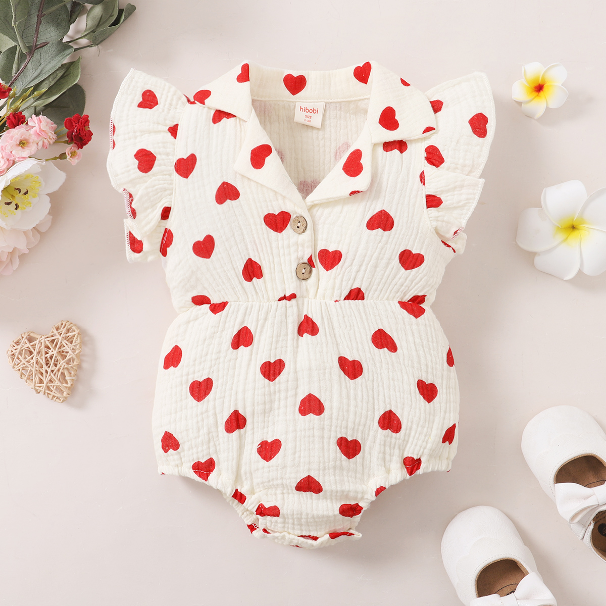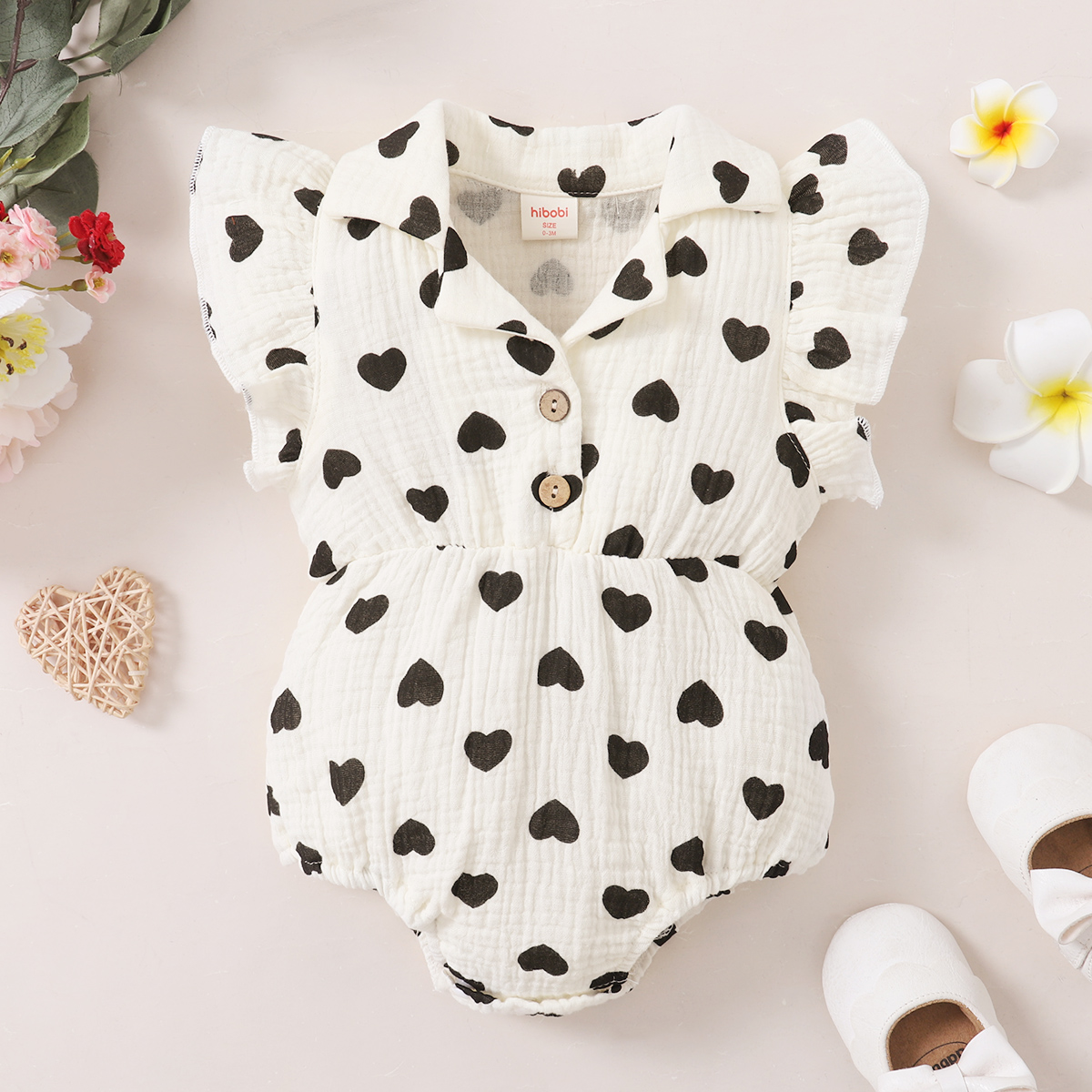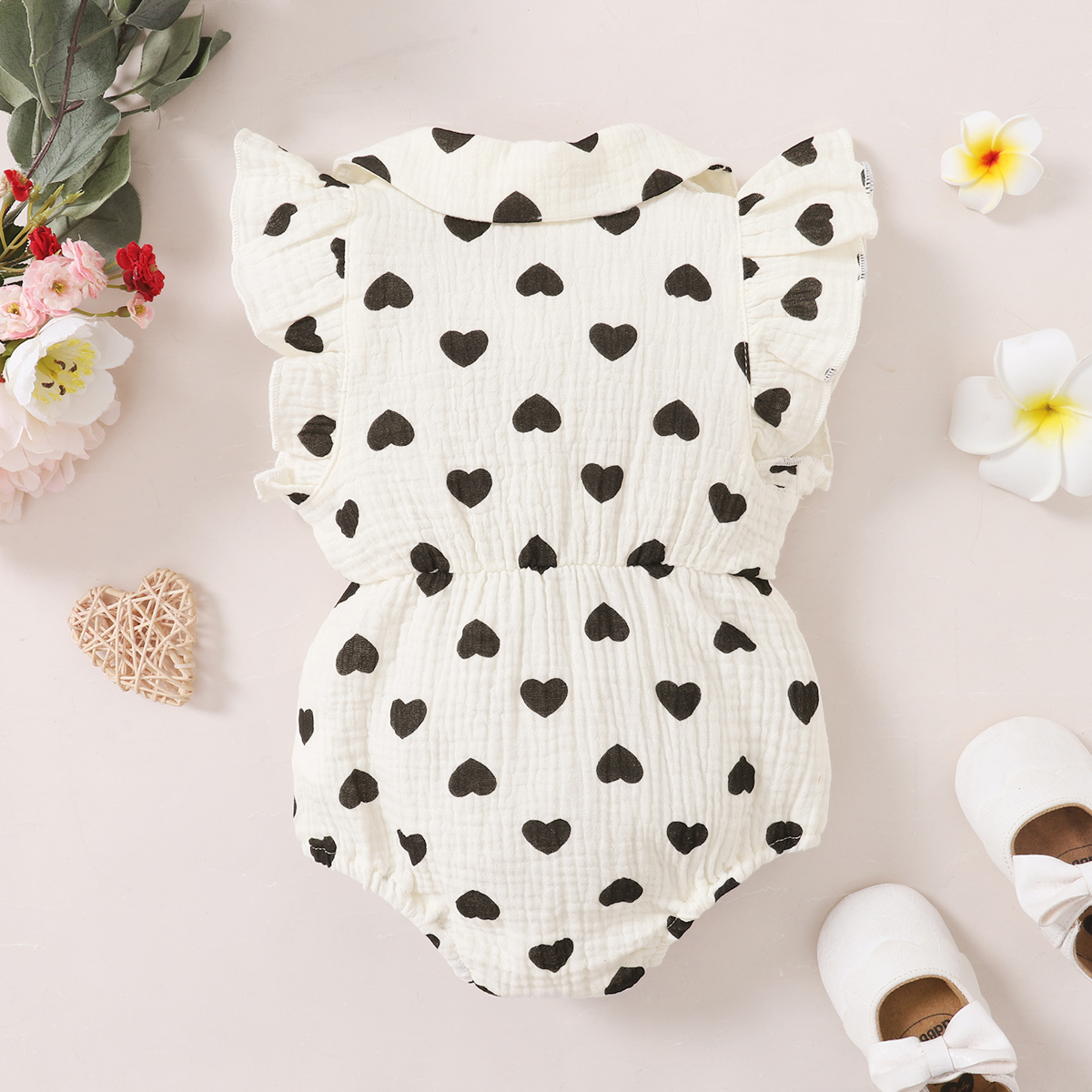 hibobi Baby Girl cute cartoon love print ruffle Jumpsuit Wholesale
