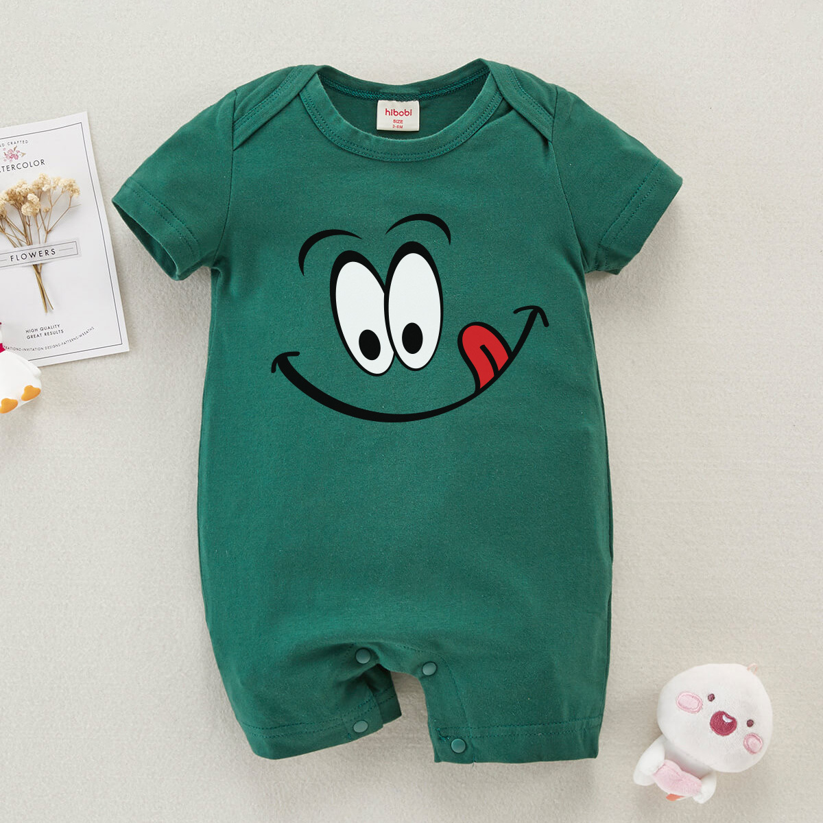 hibobi Baby Cartoon Emoji Print Short Sleeve Bodysuit Wholesale
