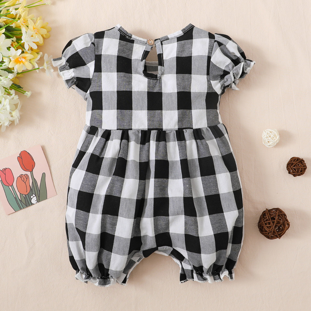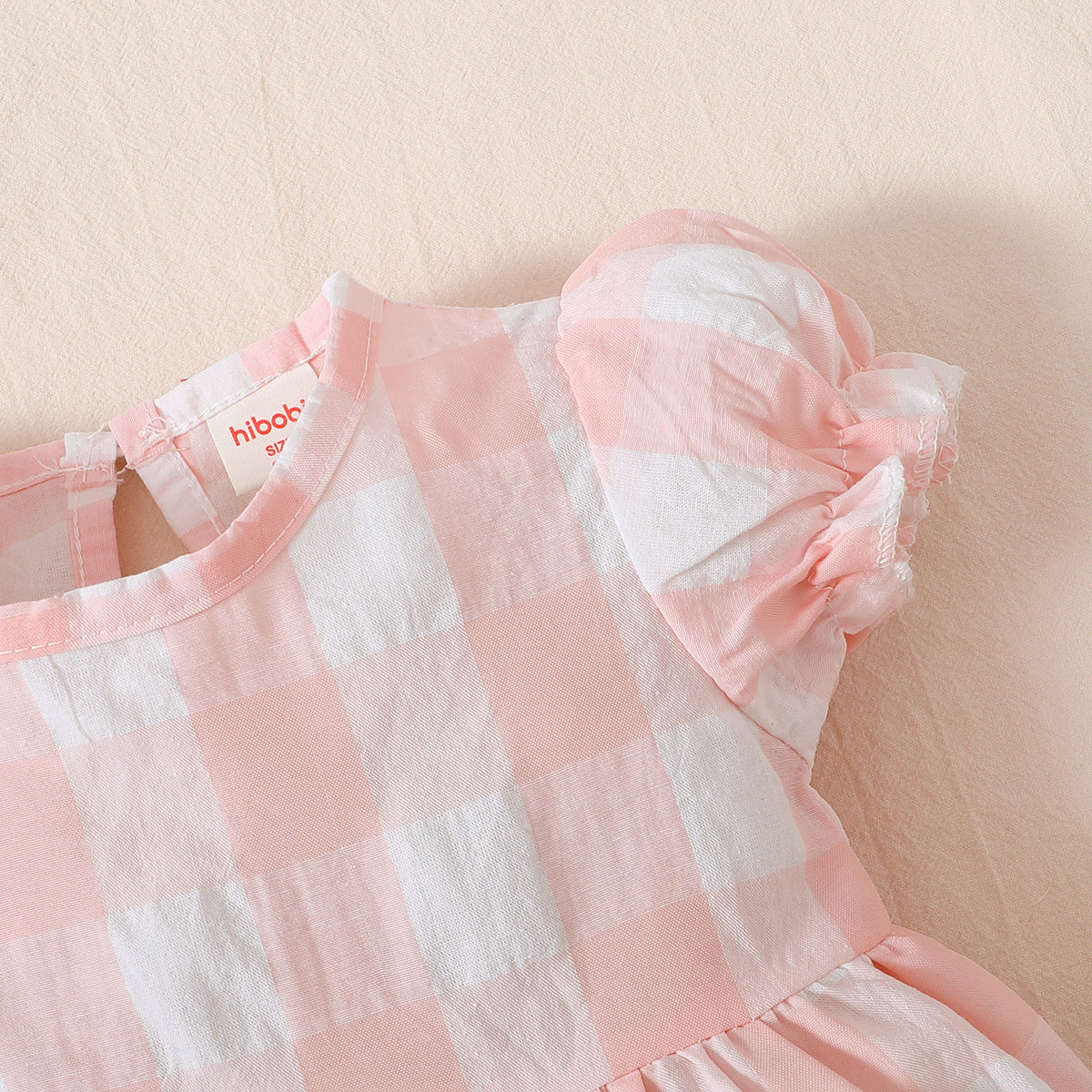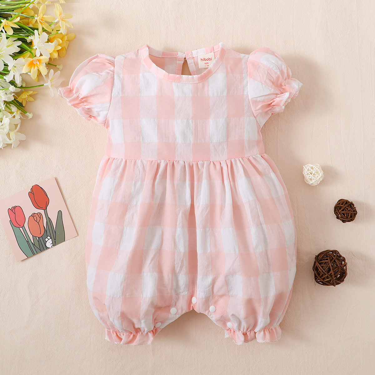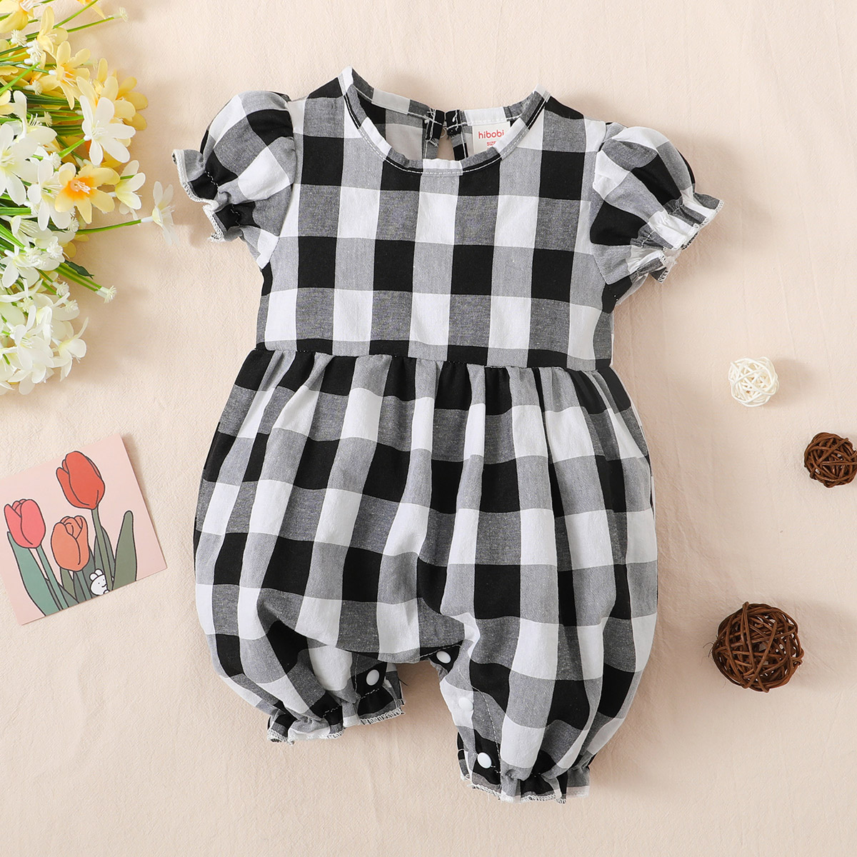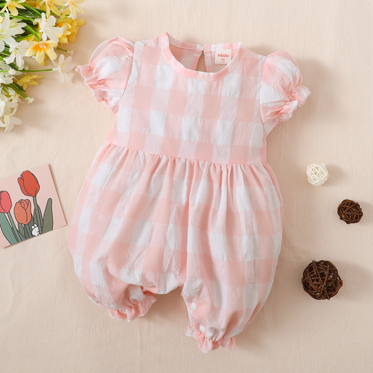 hibobi baby girl bubble sleeve plaid cotton jumpsuit Wholesale