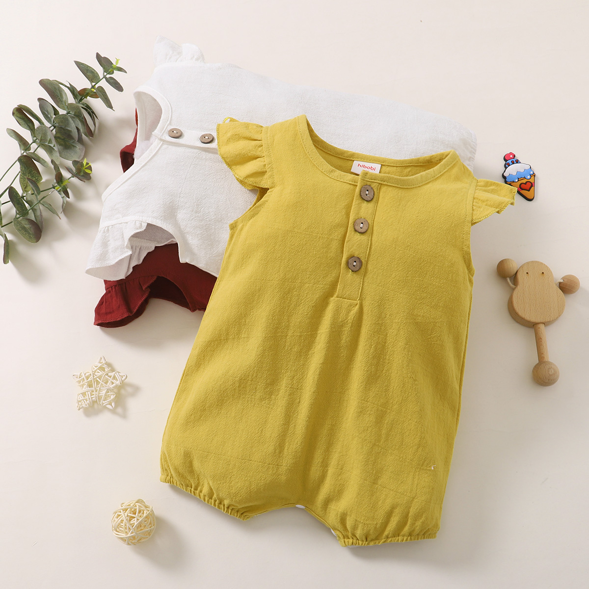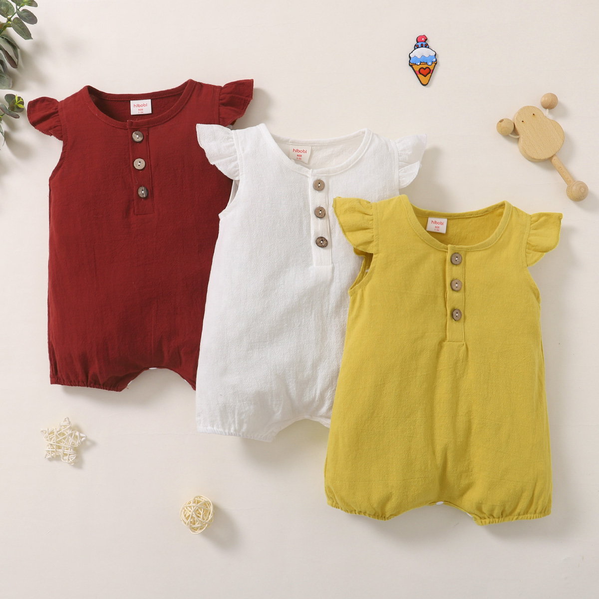 hibobi Baby Girl Cotton Round Neck Solid Colour Bodysuit Wholesale