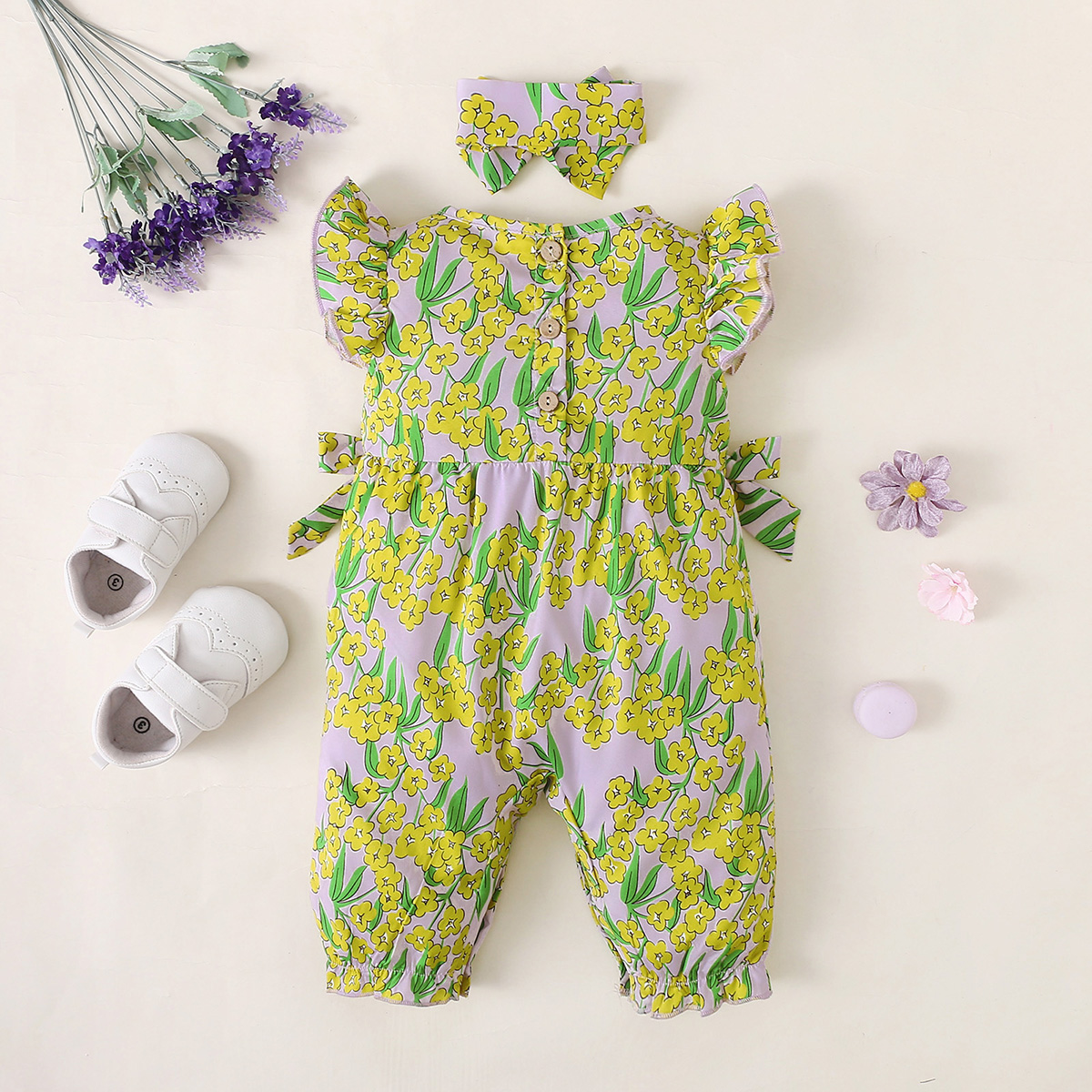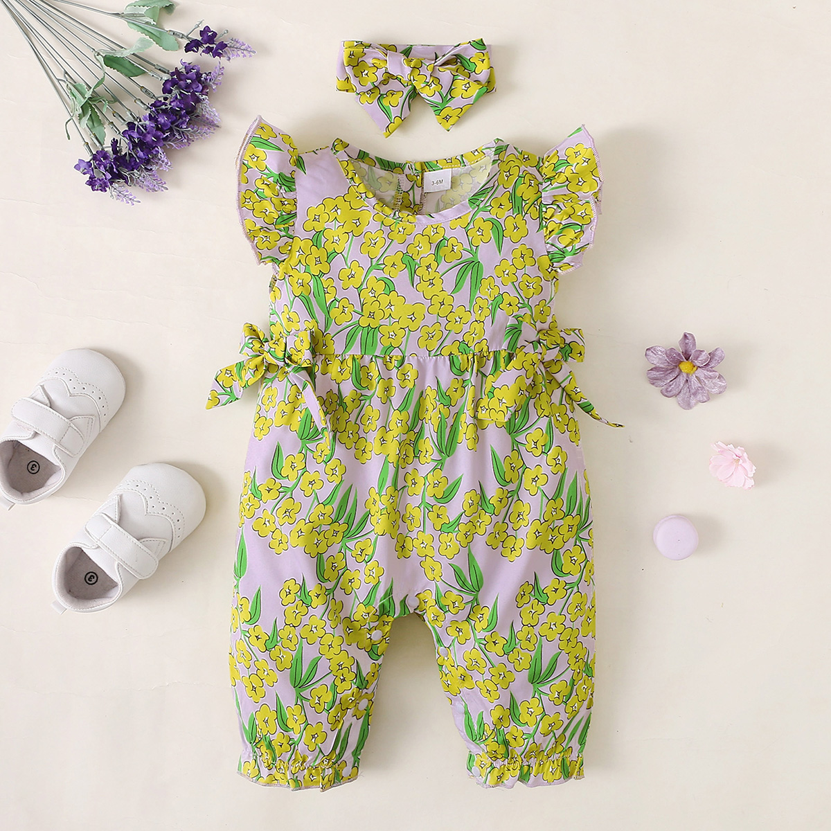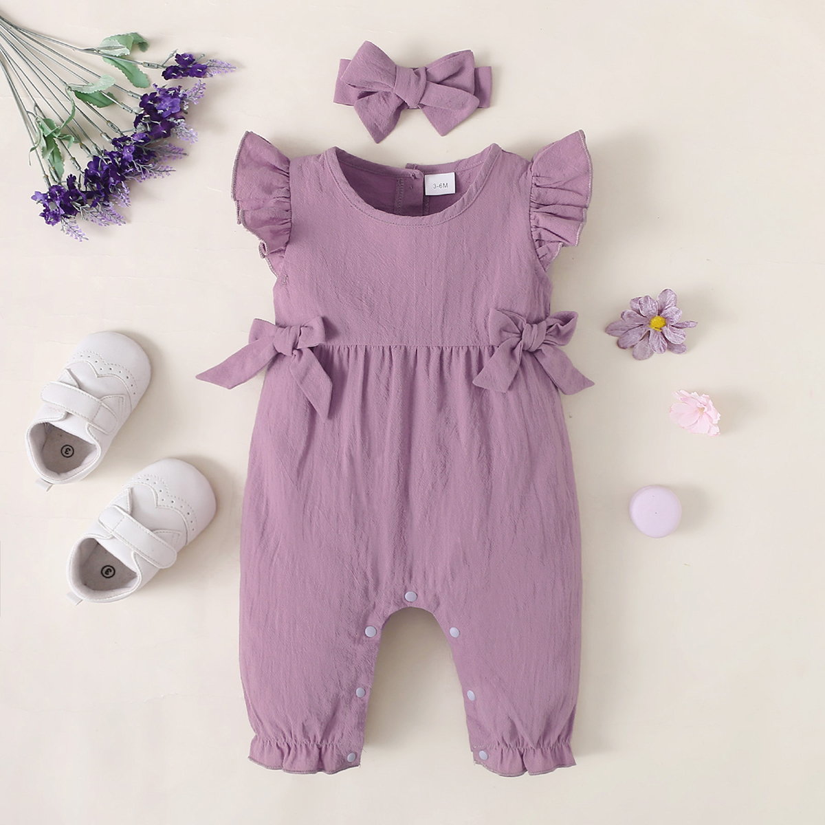 hibobi Baby Girl Fly Sleeve Bow Jumpsuit & Headband Wholesale