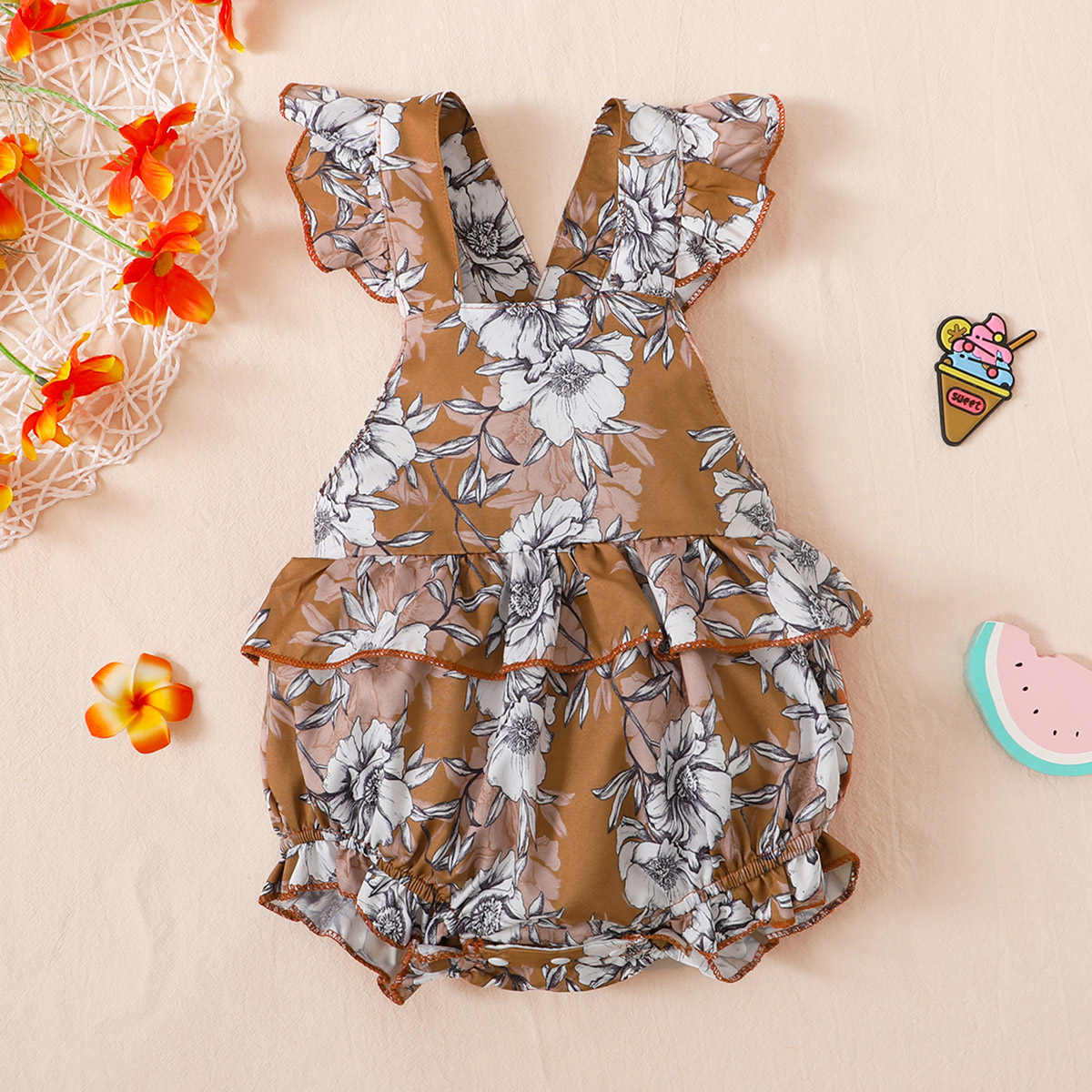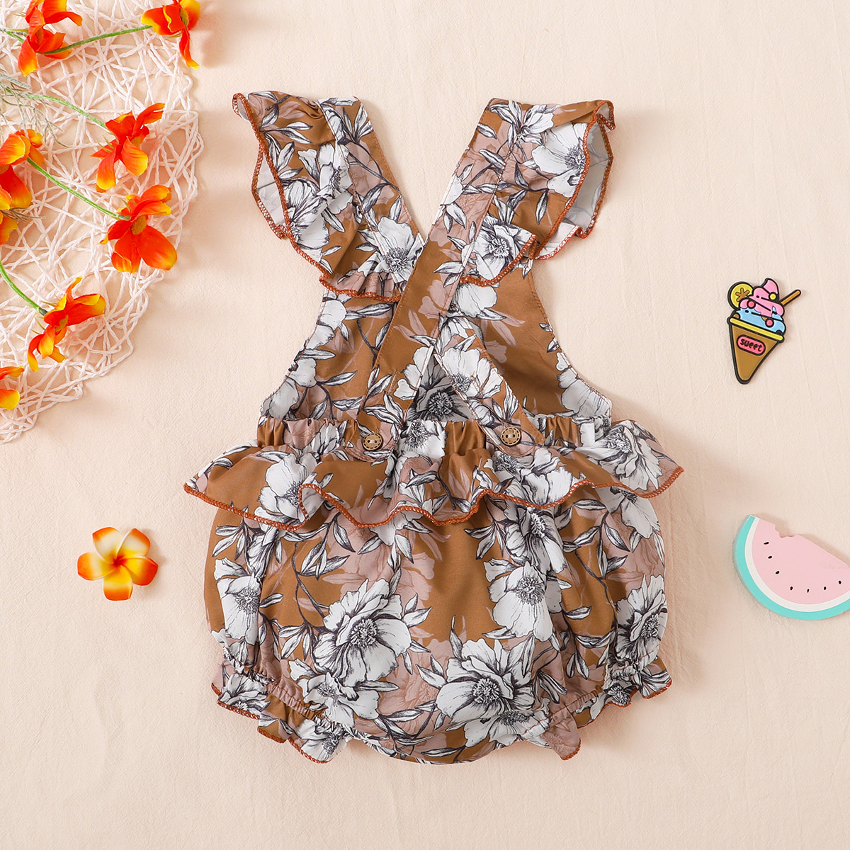 hibobi Baby Vintage Print Ruffle Straps Jumpsuit Wholesale
