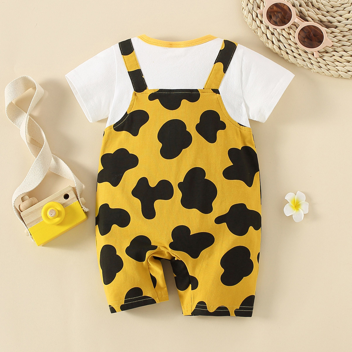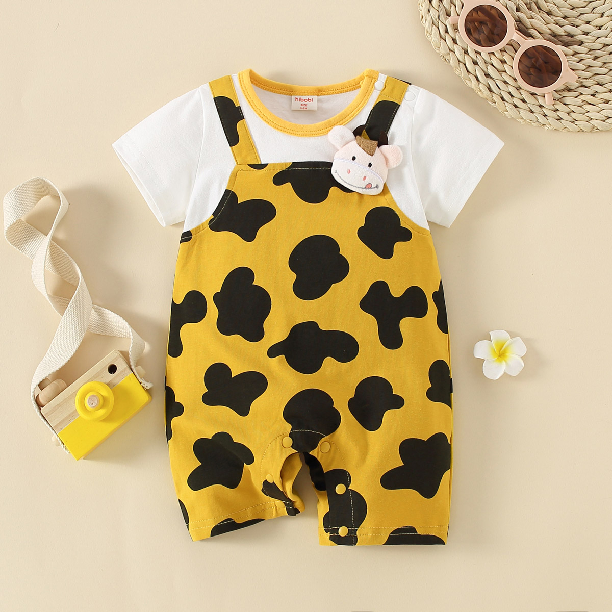 hibobi Baby Yellow Cow Print Patchwork Short Sleeve Bodysuit & Cute Little Cow Wholesale