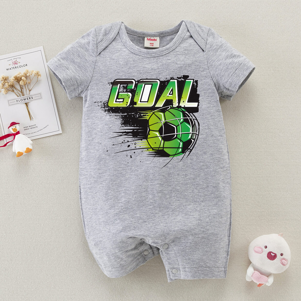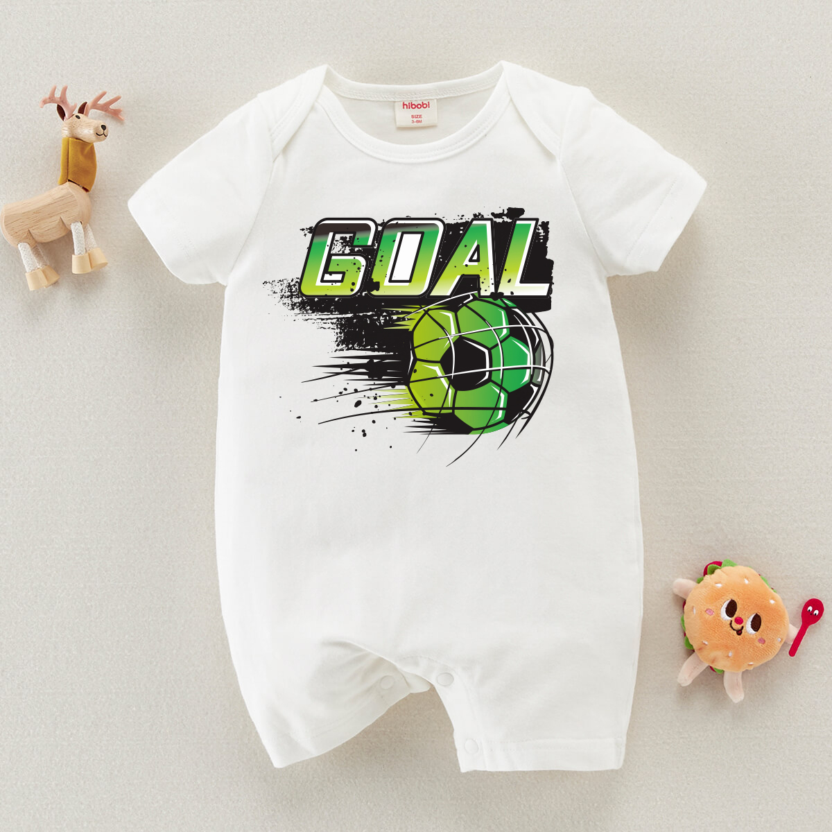 hibobi Boy Baby Green Football Print Short Sleeve Bodysuit Wholesale