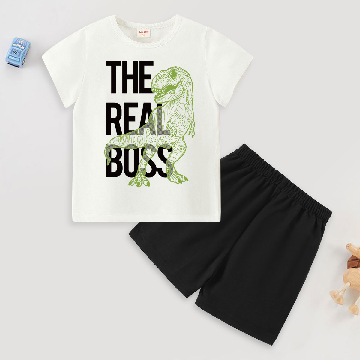 Toddler Boy Lettered Dinosaur Short Sleeve Set Wholesale