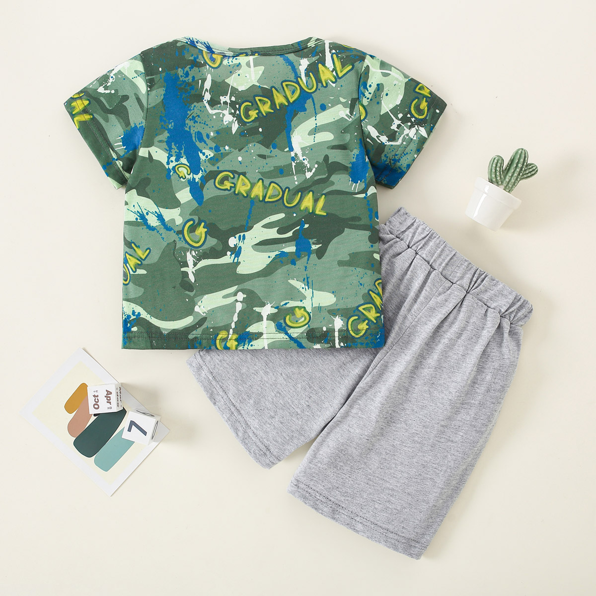 Toddler Boy Outdoor Camouflage Short Sleeve T-shirt Suit Wholesale
