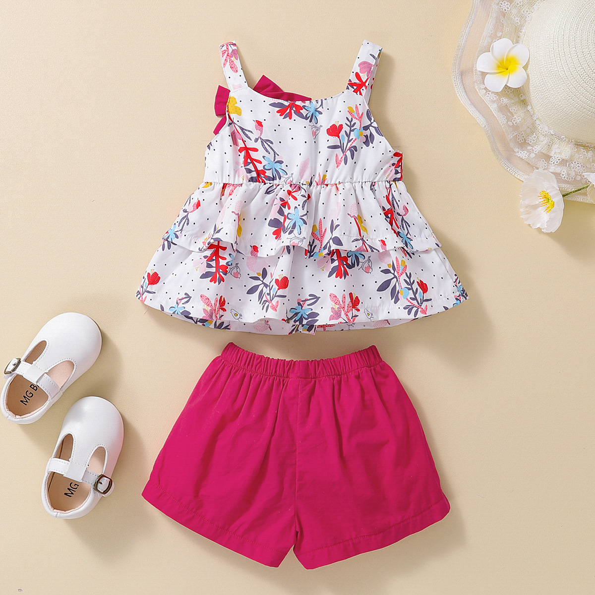 hibobi Girl Baby Floral Print Halter Bow Set Wholesale