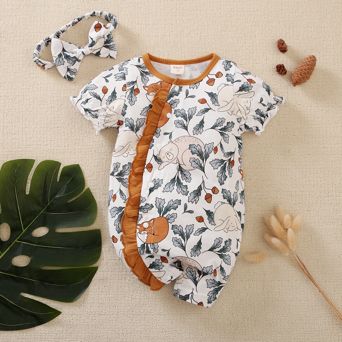 hibobi Girl Baby Forest Sleeping Animal Bodysuit & Headband Wholesale