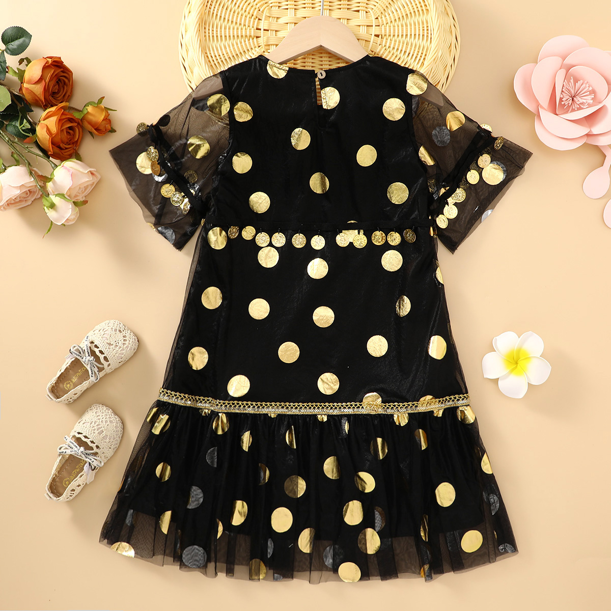 Toddler Girl Baby Gold Polka Dot Dress Wholesale